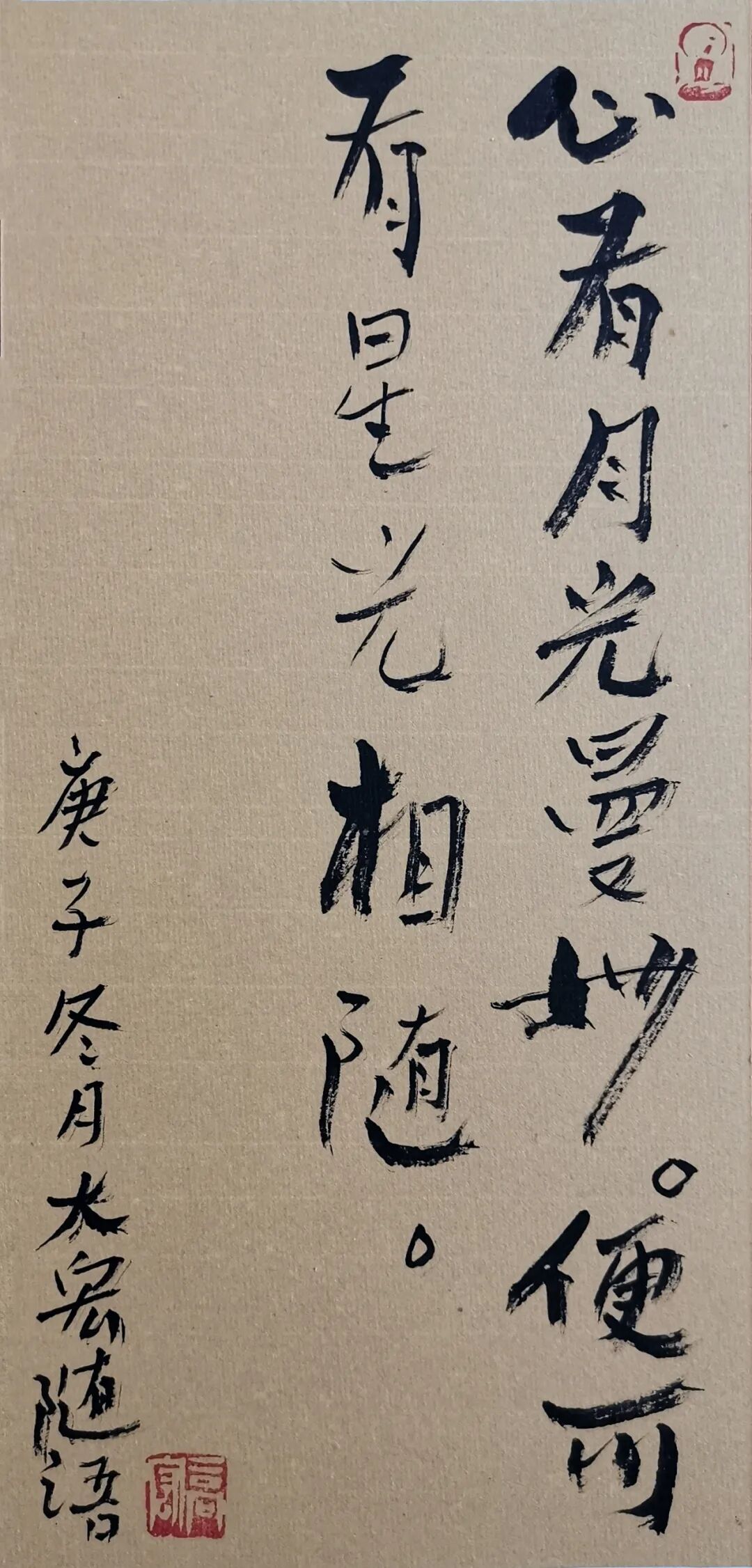 其实最重要的是自己心灵的颜色,如同一块石头在山里是神仙,搬到城市里就成了石头了,道理就是石头周围没有了野草和河流,没有了窜出的动物和起舞的蝴蝶,人为的占有都是徒劳蛊惑,会让很多东西失去光泽。写字画画就如同自然界中的云朵在水中舒卷一样,痛不痛你不知道,水知道。艺术也是一样,总有人会懂你,多数都是飘走的旱云,看似端庄温润,实则没有意义,我写的字即不端庄也不温润,更没有什么意义,朋友爱之,求之,送之,一切快乐就好……