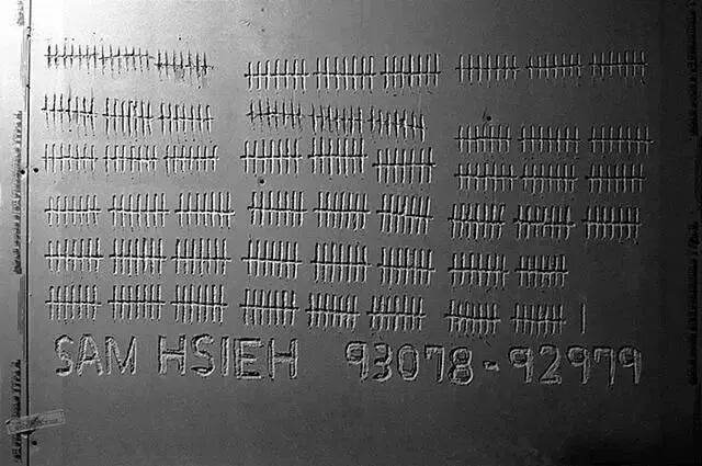 每天,他唯一的“工作”就像原始人结绳记事一样在墙上划一道印。此外,他的生活就是为了活着而活着,生活就是日复一日的吃了睡,睡了吃。