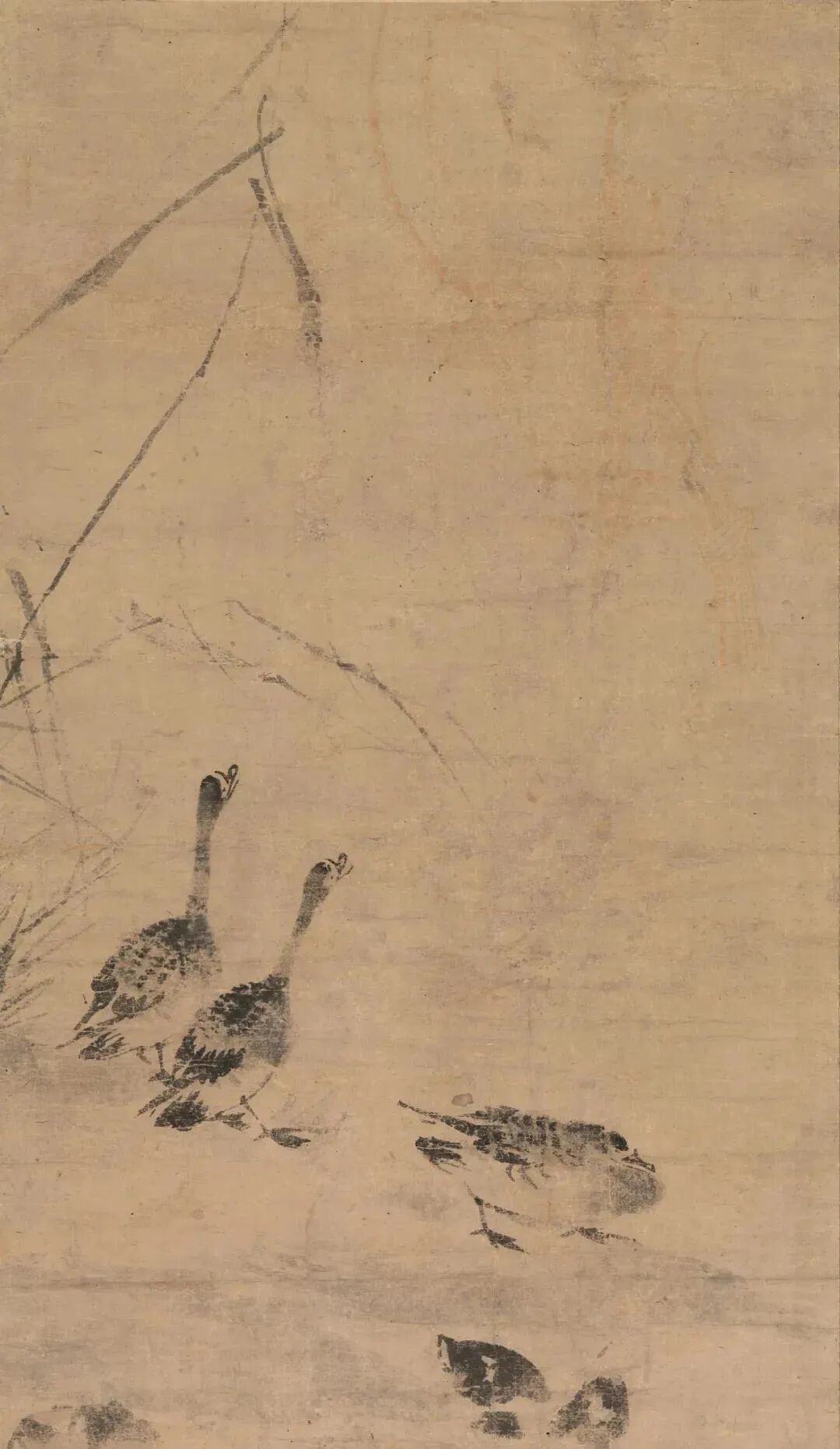法常在中国绘画史上一度被忽视,这与宋代更尊崇以工细为主流的院体画有关。宋画界高手林立,粗头乱服的写意画自然就被边缘化了。法常笔下的空寂荒寒与枯淡清幽,是当时生活普遍富足繁华的宋朝文人所体验不到的,要一直到400多年后的明末清初,看着国家衰败破灭而避入空门的八大山人和石涛,才能深刻地体会到。