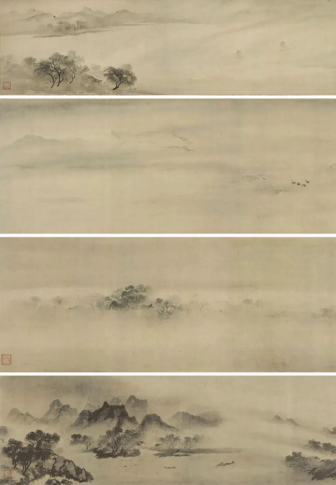 日本能乐大师世阿弥曾说,“隐藏着的才是真正的花。”在日本人眼中,隐逸的朦胧,“不可说”才是美的极致。所以当他们看到法常的《潇湘八景图》,就被他笔下亦真亦幻的空濛之光折服了。法常给东瀛岛国日本带来了一种精巧纤细之外的空寂,在荒寒清幽处,还有一种他们可望不可及的雄浑磅礴之美,这种丰茂大音正是彼岸隐藏着的真正的花。