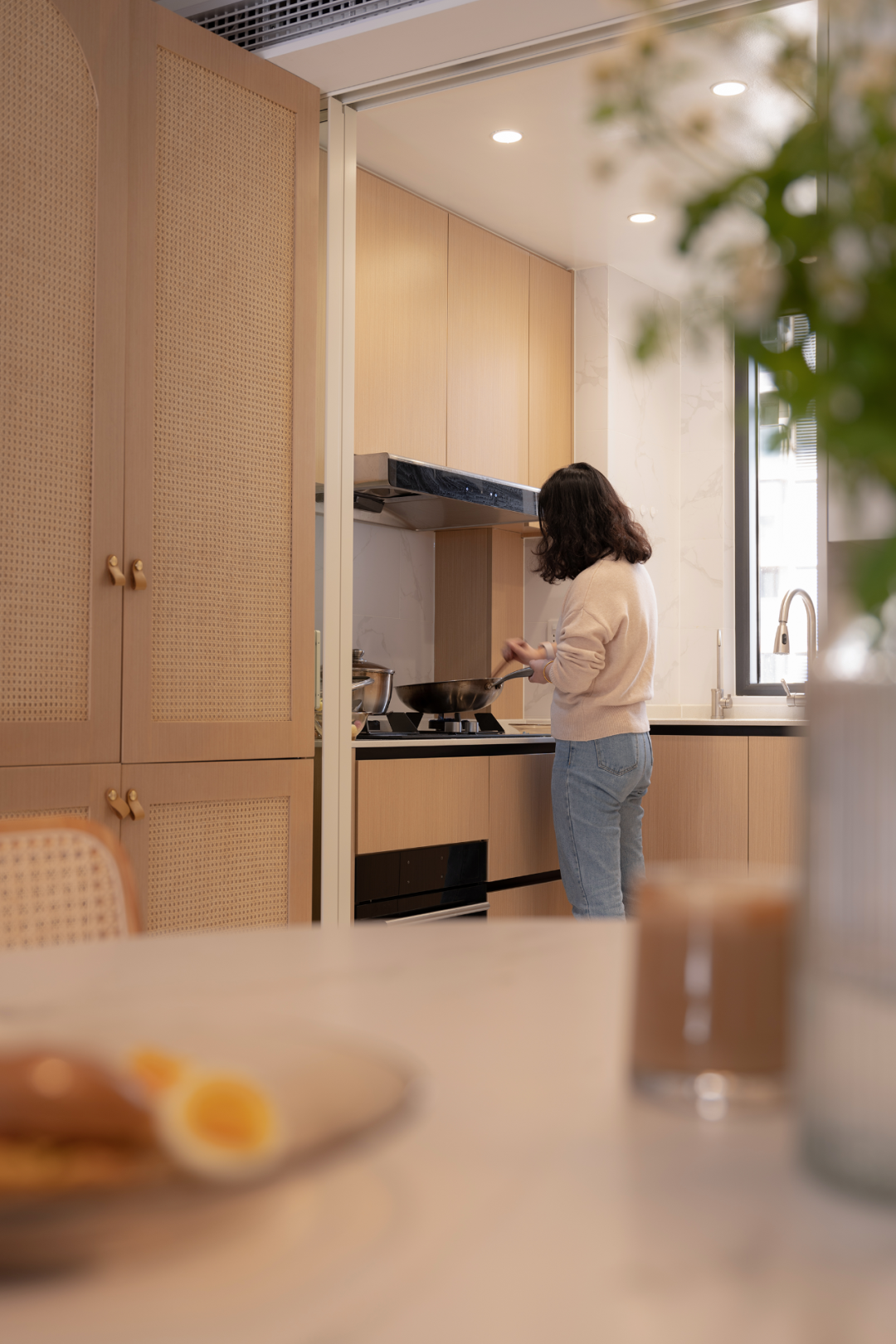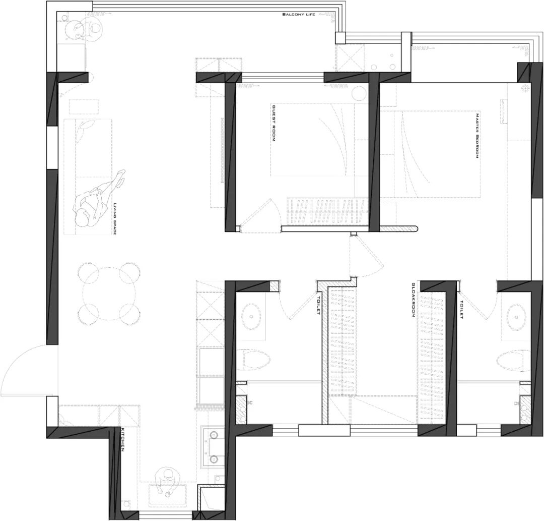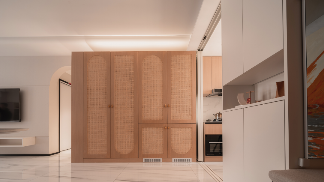 主卧套房拥有一间独立的衣帽间,这也是装屋主购买这套房子的动力。