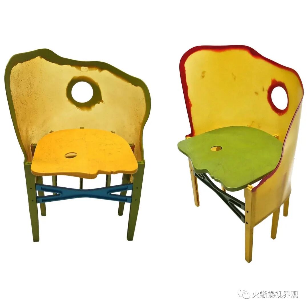 下面这位就是设计界的“老顽童”盖塔诺·佩西(Gaetano Pesce),他一生中创造了很多奇奇怪怪的椅子,比如“人无完人椅”、“Up5_6扶手椅”等。他非常注重现代工业材料对于塑形的实践可行性,通过调整材料配比、浇灌速度和角度,创作了形色各异的艺术作品。他的作品带有强烈的手工质感和有机物的形式特征,混乱、色彩鲜亮如同融化的圣诞节糖果。