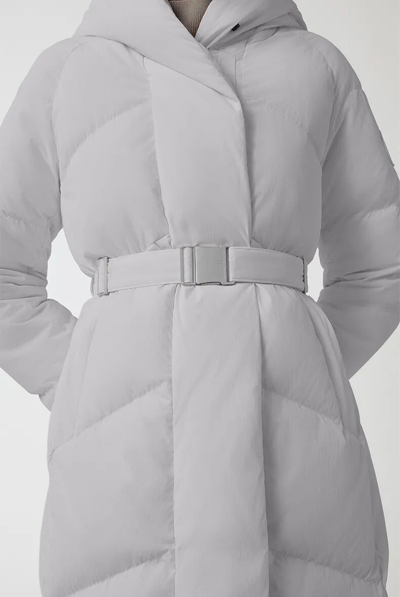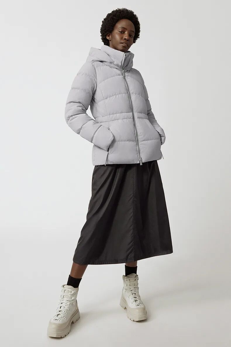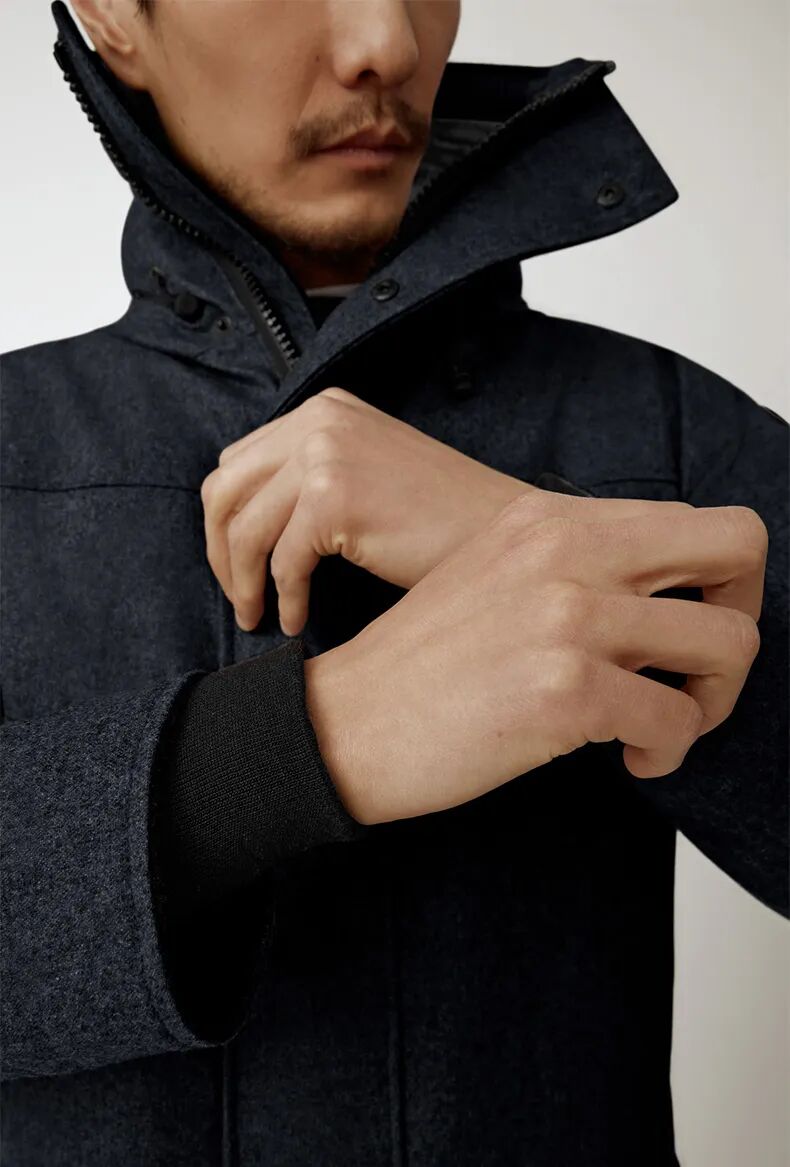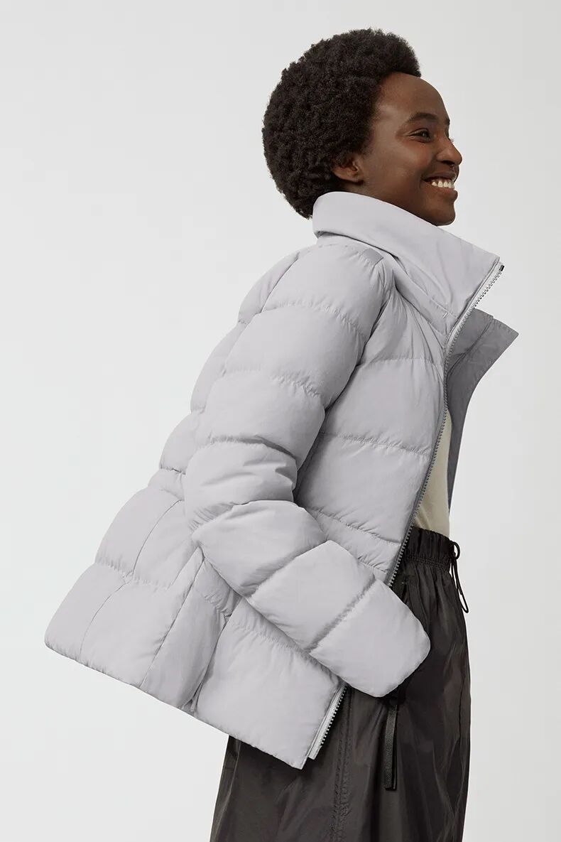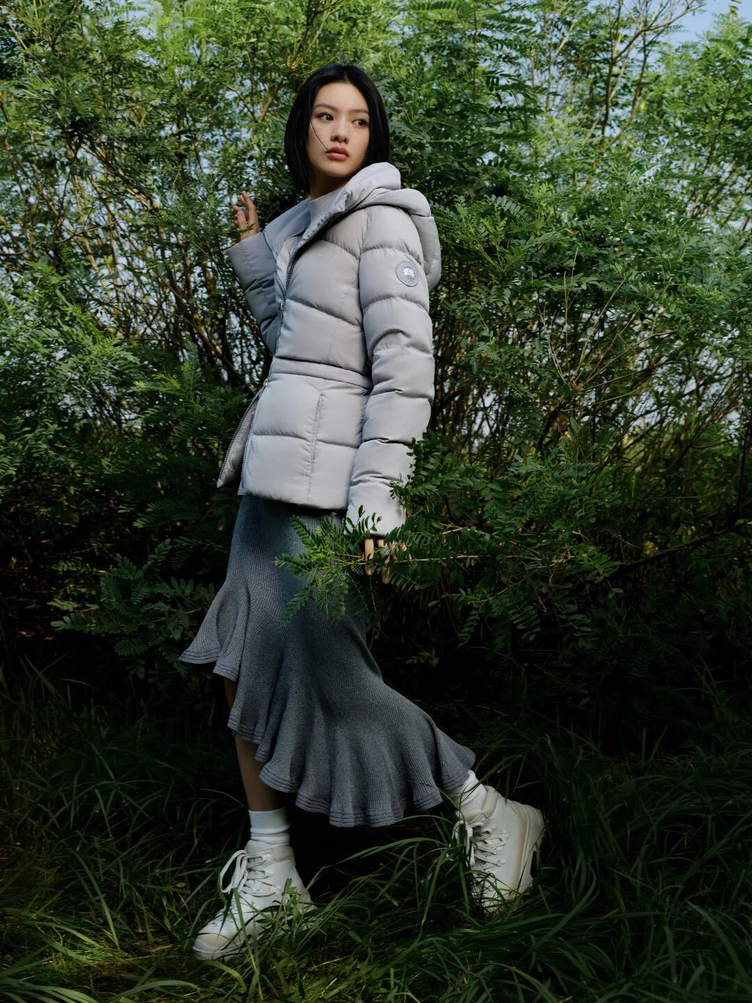 在黑和深褐色这样经典的秋冬色系中,加拿大鹅2022秋冬系列带来了月光石灰、蒿绿色、蔚洋蓝等温柔且充满自然生命力的配色,满足了当下需要在都市与户外来回切换的多场合穿搭需求。