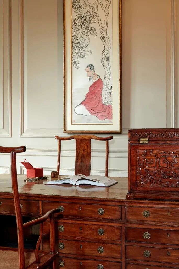 陈放于宅内的藏品全经他精心挑选,他以个人眼光和审美为基础,将18世纪英式家具放置在16至17世纪的明式黄花梨家具旁,前者与大宅环境自然融合,后者流露中国文人雅趣;中国青花瓷和古代书画器物陈列于家具之间,与维亚尔、德加、马蒂斯的画作并列一堂,别有佳趣。这番室内景致揉合中国文人气度与英伦绅士的审美,优雅和谐,恰如何爵士的人生写照。