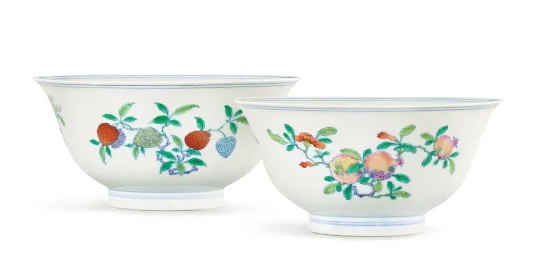 清雍正 斗彩加粉彩三多撇口盌一对 16cm