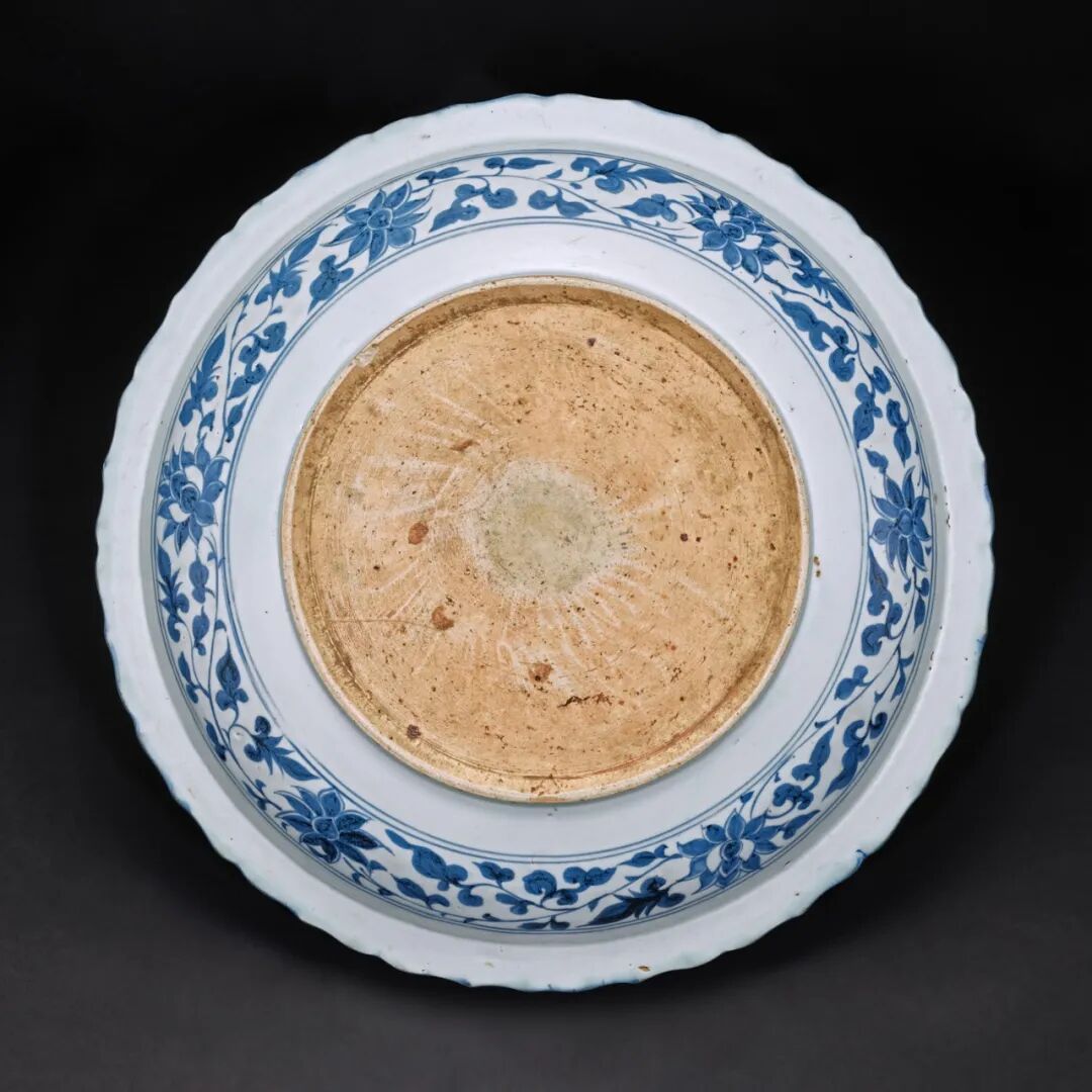明宣德 青花外莲瓣内缠枝花卉纹莲子盌 20.5 cm