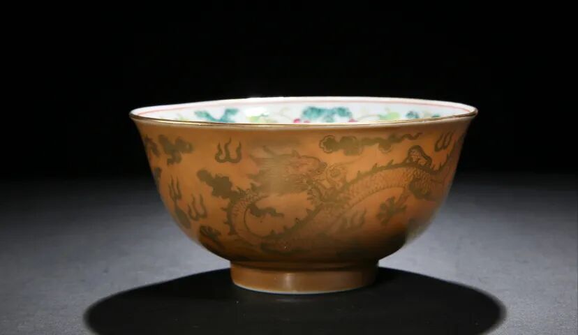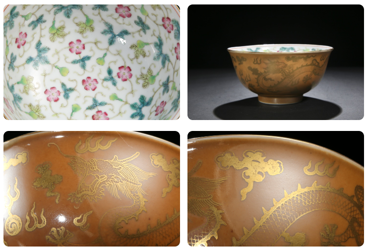 清光绪·外紫金地描金云龙内粉彩福禄万代纹碗