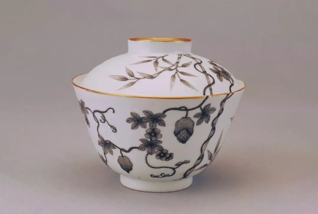 墨彩描金技艺是景德镇传统陶瓷文化的典型代表。它在墨彩的基础上,用金料勾勒,画面素净优雅。
