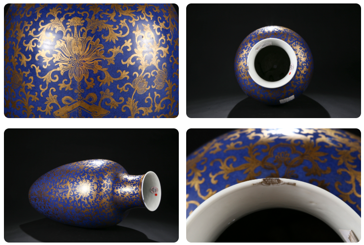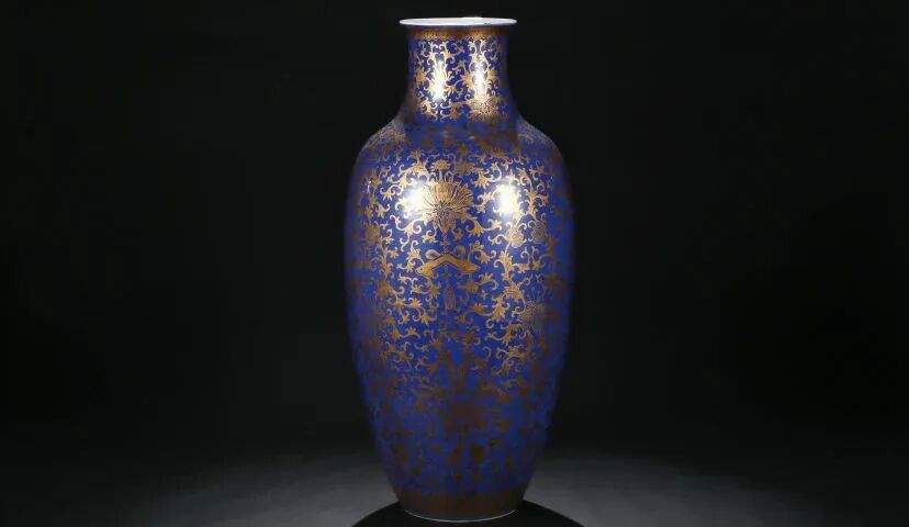 清光绪·洒蓝釉描金缠枝莲庆纹瓶