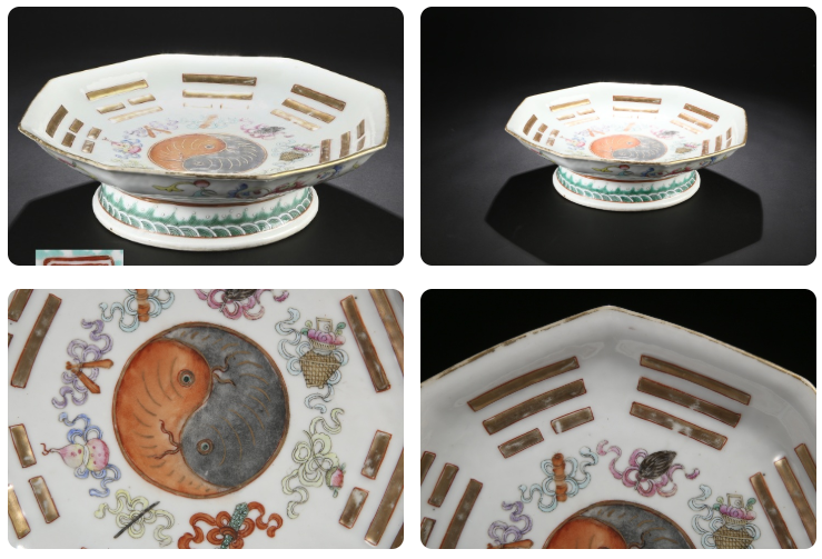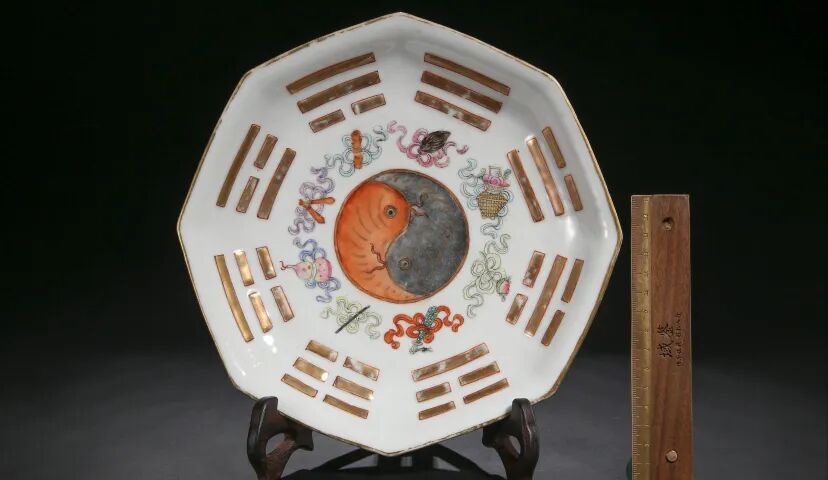 清同治·粉彩描金暗八仙太极八卦纹贡盘