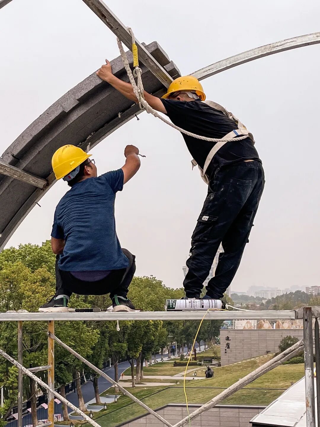 2.覆盖于舱体外部的铝板是悬空安装的,每一片均是用螺杆与圆头螺母无损安装,工人当时直抱怨,干了好几天,拧了8000颗螺母。
