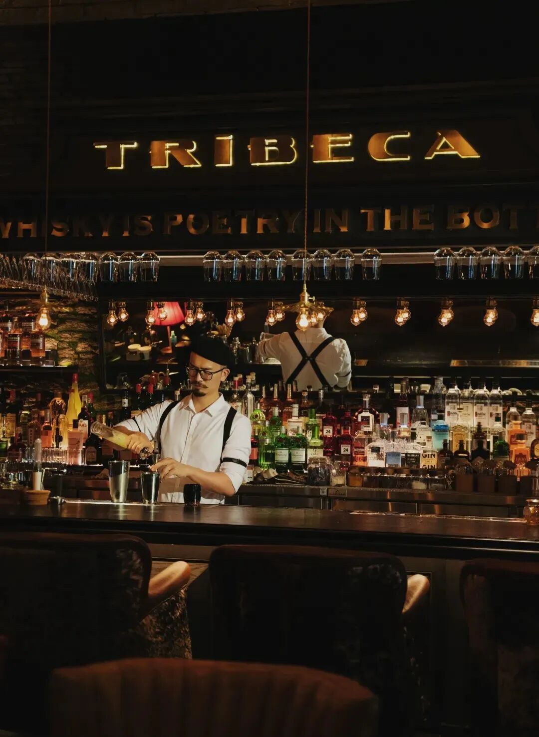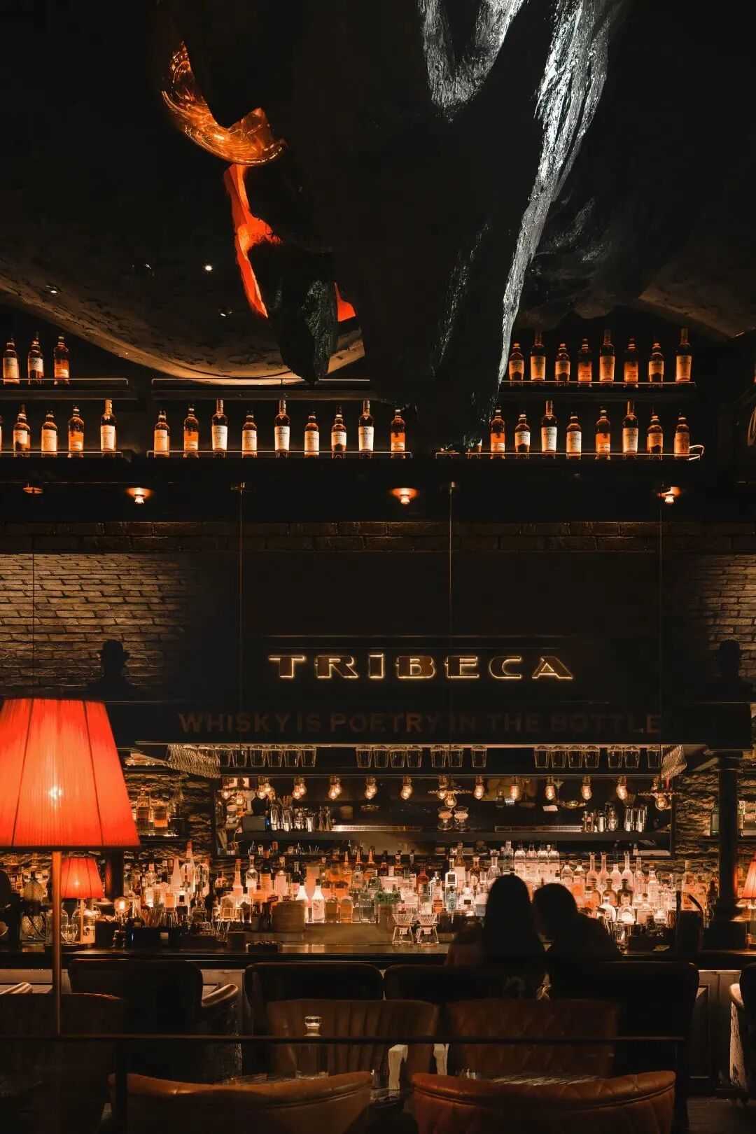 翠贝卡始终注重吧台文化,以吧台为核心辐射全场氛围。