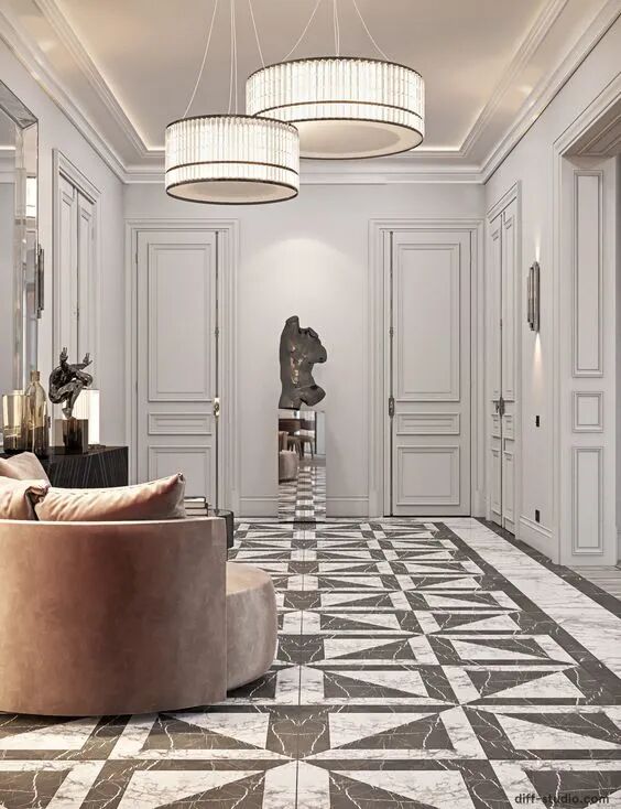 c、异形户型:缺角比较多时不建议斜铺,斜铺瓷砖切割较多,不美观,可以采用不同方案进行正铺或者分区造型。