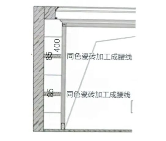 ⑥ 有腰线的地方,从腰线上下用整砖起铺较美观。