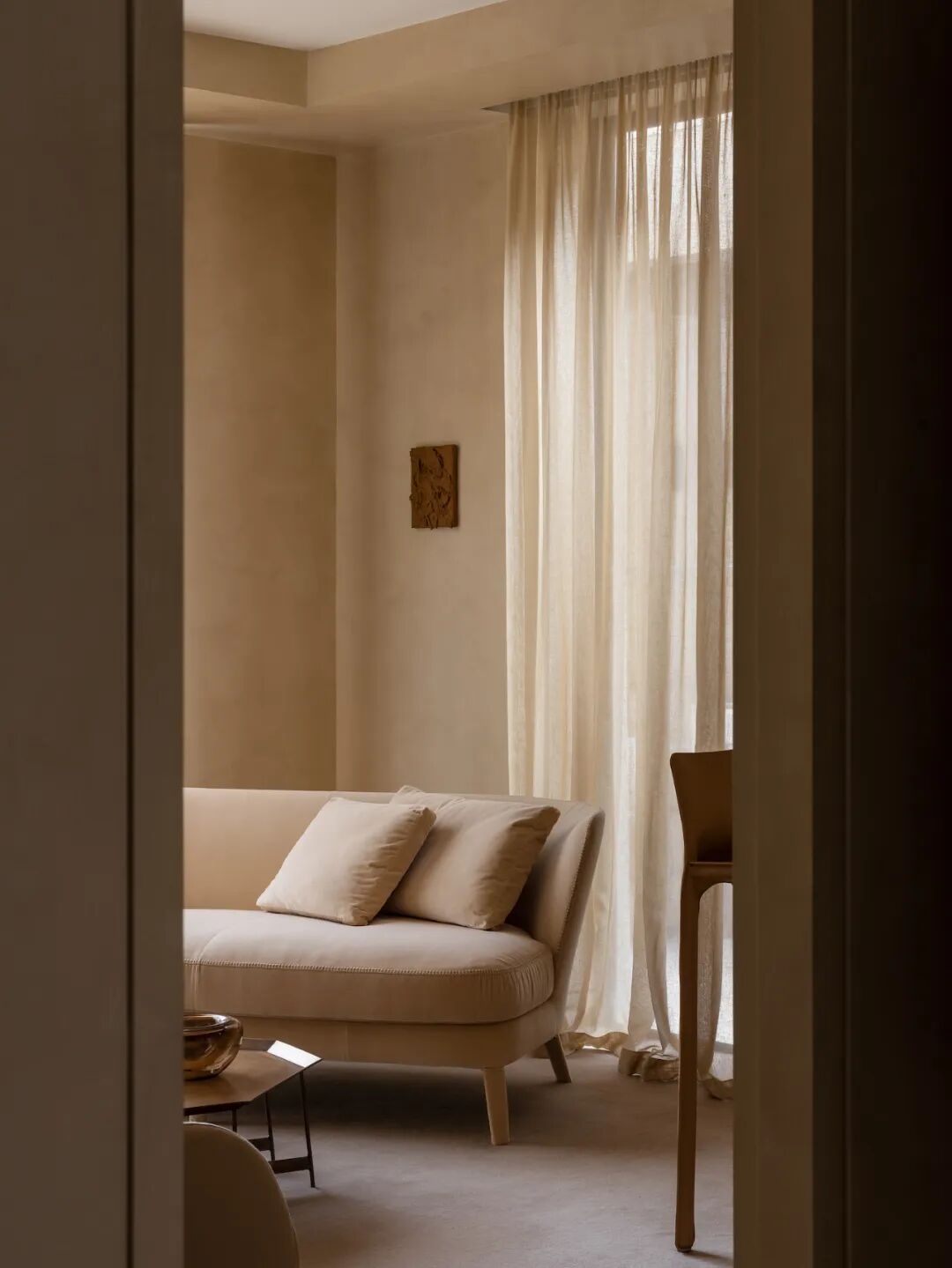 当您踏入这座经过改造的联排别墅时,有一种被带出城市的感觉,进入一片平静的中性色、柔软的家具和温暖的质地的海洋。其丰富的焦糖色调,是繁忙城市生活的完美背景。业主是一对带着年幼女儿的专业夫妇,想要一个与工作日完全分开的地方。为新的一天增添了活力的空间。