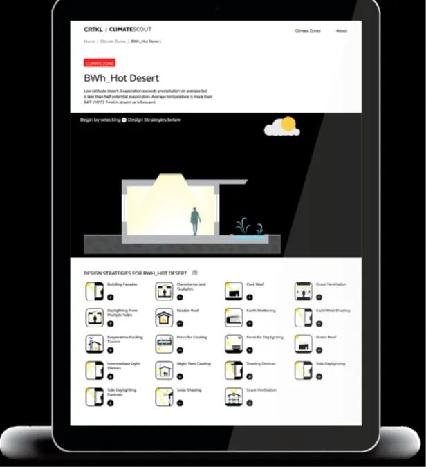 Through a combination of data and images, CLIMATESCOUT connects climate with architecture to help users create better performing, responsive buildings.