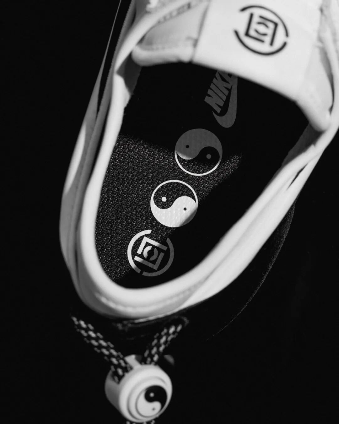 这款鞋在外部体现上使用黑白两色的搭配与鞋垫、后跟的装饰来表达阴阳这一概念。再深一步来讲,制鞋理念上的传统与创新,中西方文化的内敛与奔放,甚至在产品合作中的 Nike 与 CLOT ,这些都可以延伸为阴阳理论的具体表现。