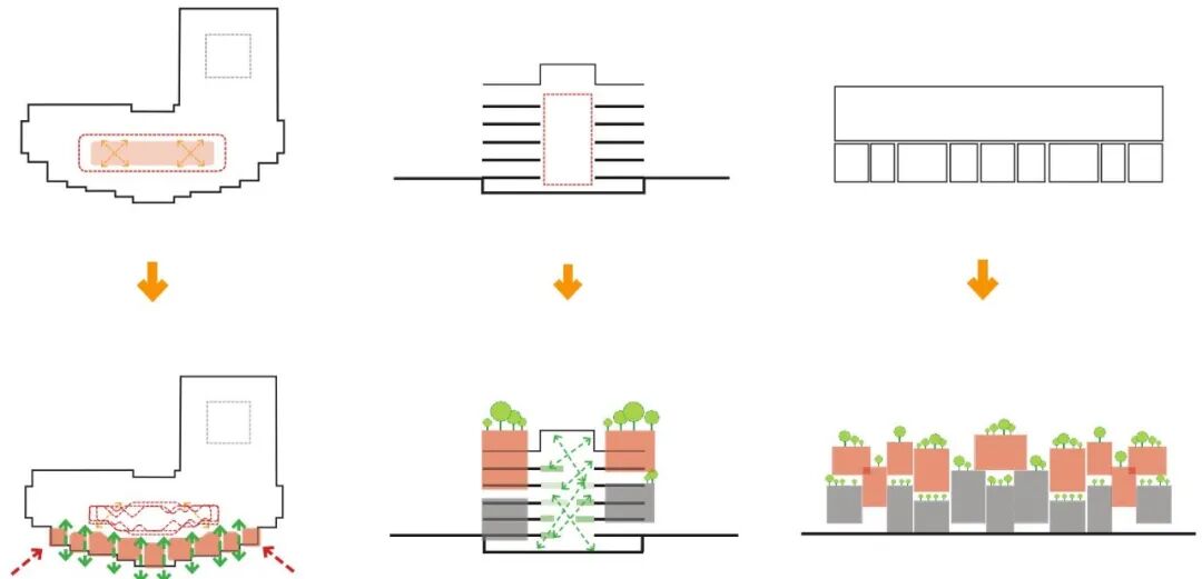 Kokaistudios takes "Pixel CITI(C)" as the design concept: pixels as an individual yet intact element itself can achieve amazing display effects after being combined into a whole graphic; when applied to the design of buildings and city blocks, it can become the over all start-up code of CITIC Square. The design shattered the original large and single volume of the building, breaking the box, dissected it into different "pixels" and combined into a transparent, diverse and interactive city picture.