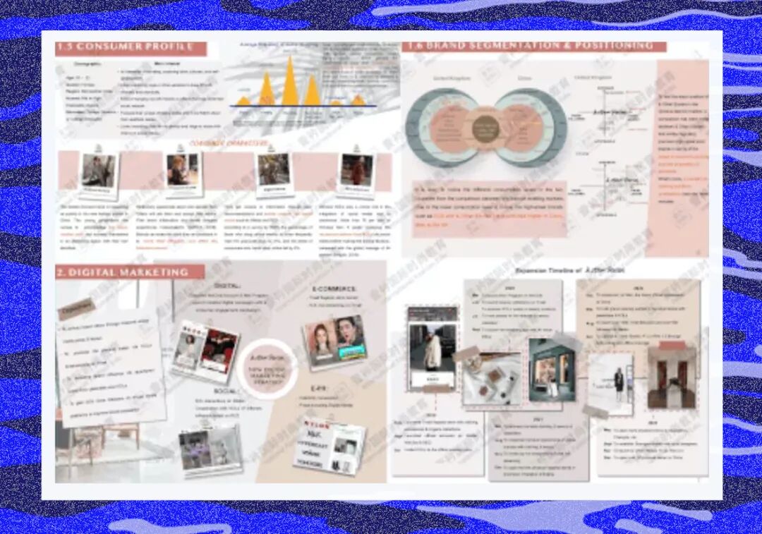 许多学生会混淆时尚管理(Fashion Management)和服装设计(Fashion Design)之间作品集的概念,这两者虽同属于时尚行业,但本质上来讲又属于两种完全不同类别的学科。设计更偏向于制造方向,而管理属于商业范畴。简单说来,设计作品集需要体现你在艺术、服装设计方面的造诣,而管理作品集则侧重在凸显你对时尚行业的敏感度,包含对时尚趋势预测、时尚品牌分析等。