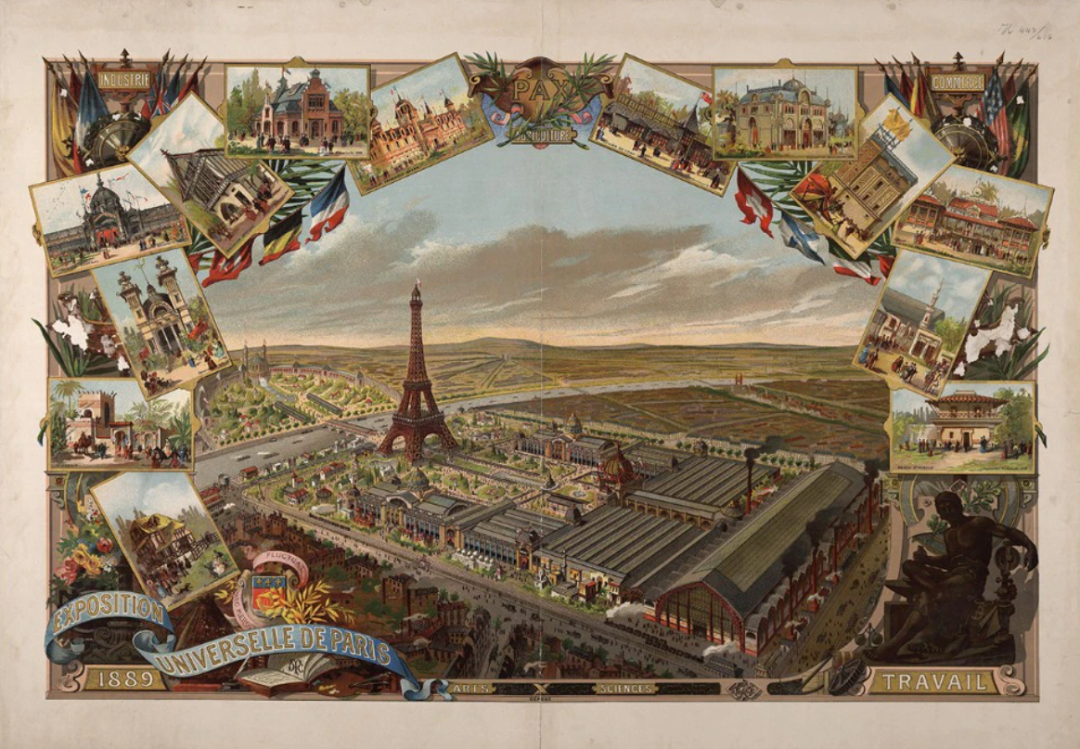 这场庆祝攻占巴士底狱100周年的展览是基于进步的壮观化,充满了全景热气球、重建的村庄、壮观的表演,主要表现的是殖民历史。然而,本届世博会是最早将自己定位为城市规模展览的展览之一,整个Champ de Mars被众多形状各异的主题建筑所占据,这些建筑在歌剧院的建筑师Charles Garnier的监督下建造,通过电网的创新和一条临时铁路线连接起来。