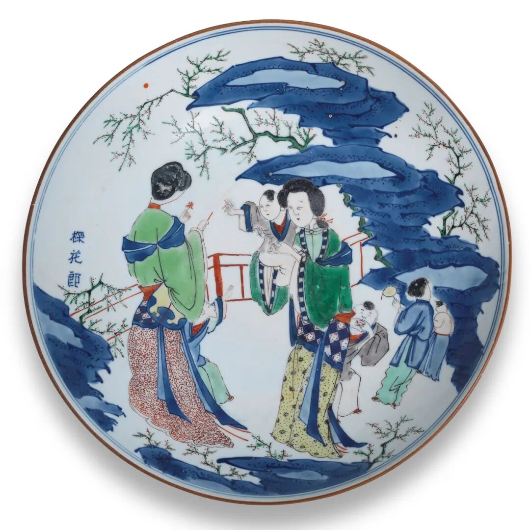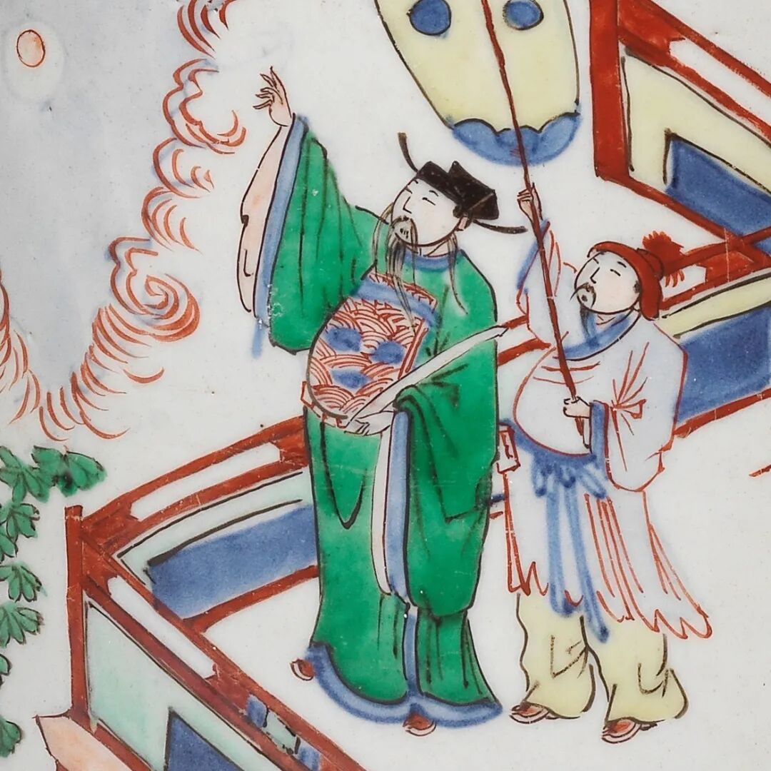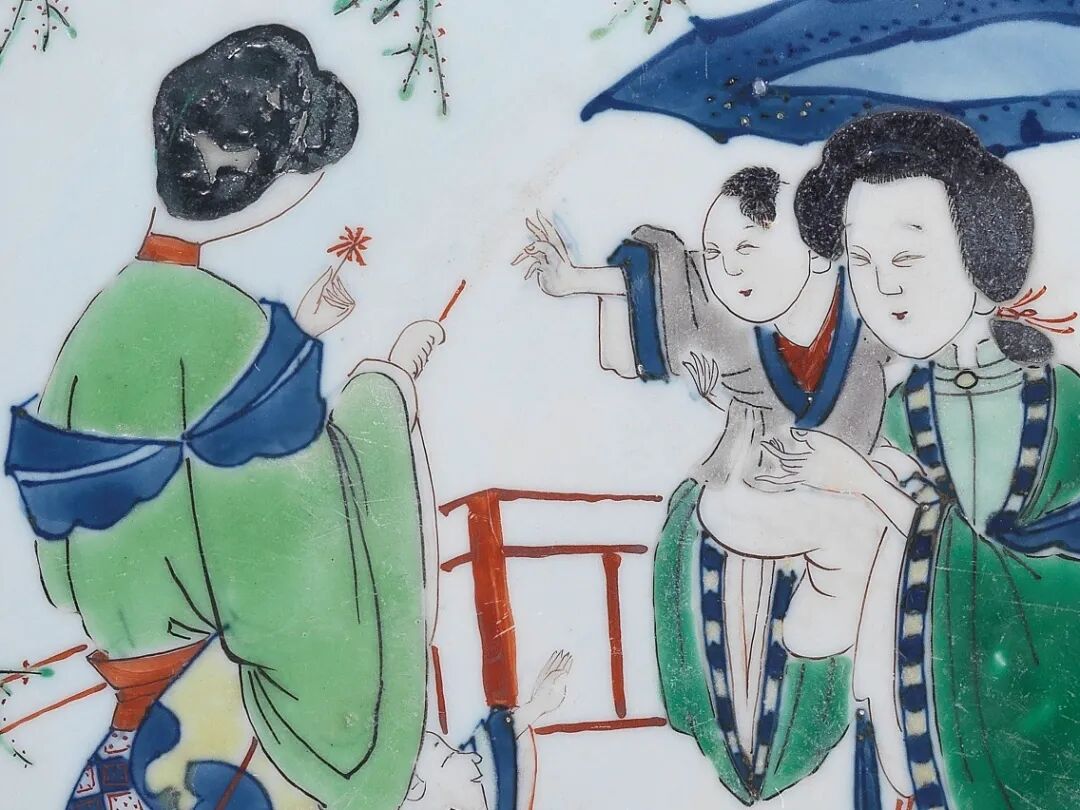 所以画师在五彩盘上借用二妃典故,也寄喻妻妾能够和睦,担任丈夫贤内助之意。