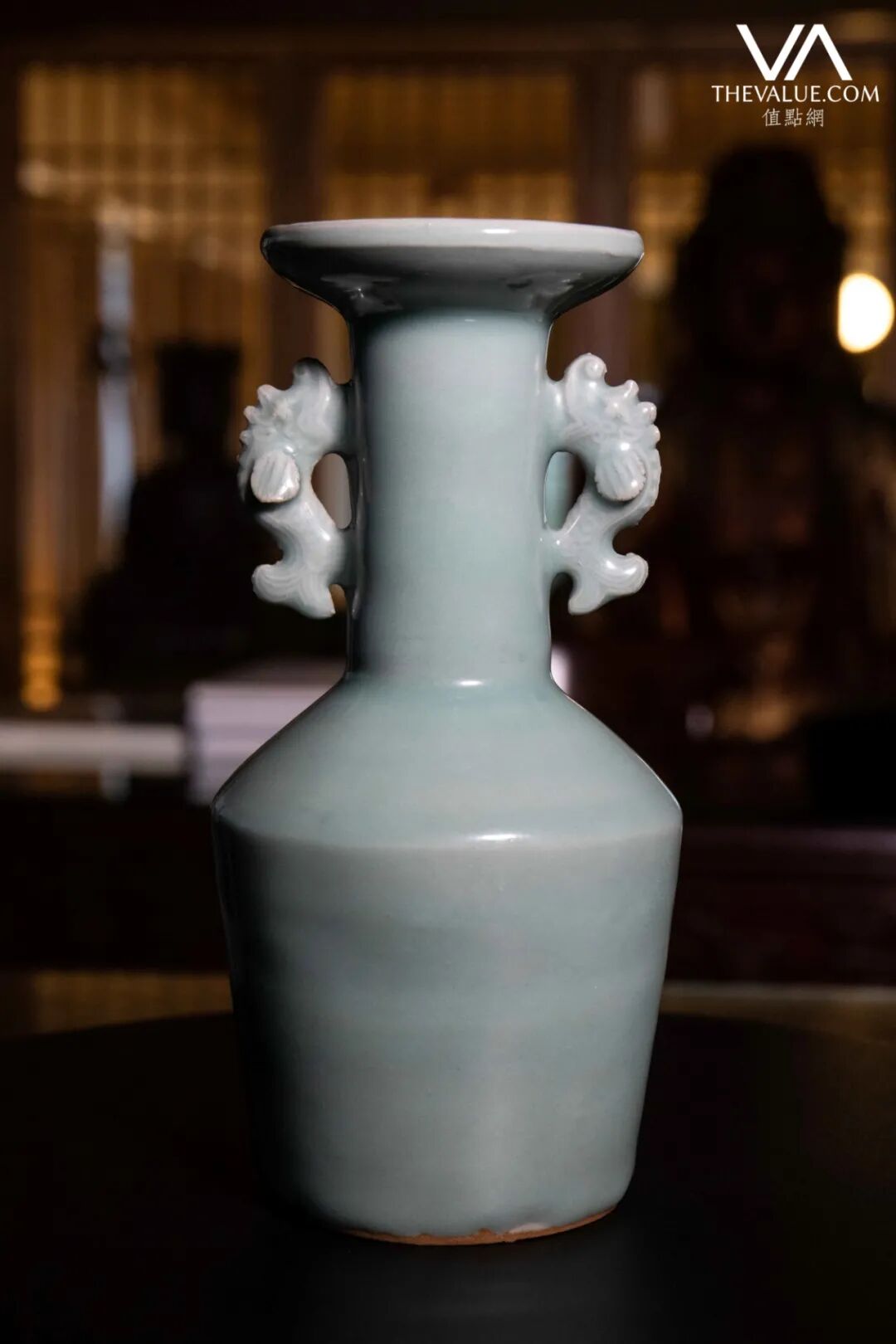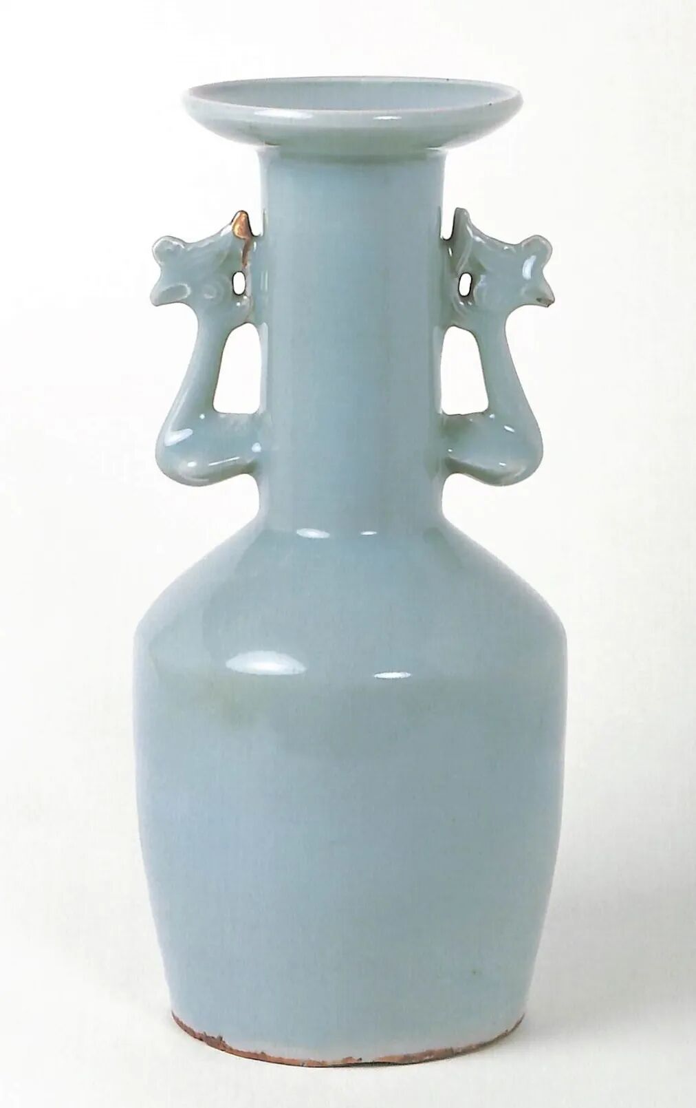 南宋 龙泉窑 梅子青摩羯鱼双耳纸槌瓶
