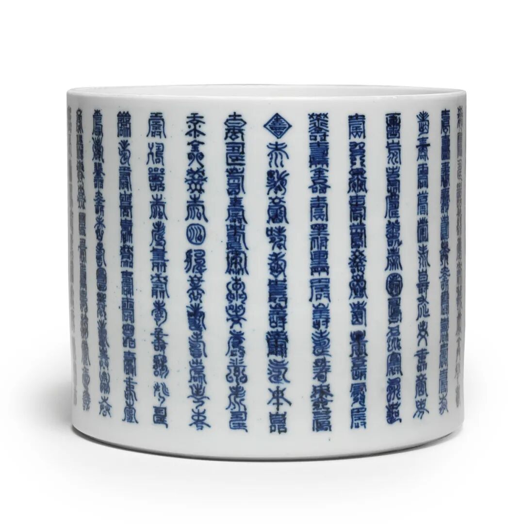 墨氏对中国17世纪文房雅器特别着迷,其中对笔筒艺术钻研尤精。例如其乾隆朝的洋彩九江琵琶亭笔筒,便被东方陶瓷学会选为2016年图录封面。两人近年更汇集笔筒藏珍,出版《笔筒渊鉴:收藏家的随心所悟》,书中不少佳作便于是次举槌,包括领衔重器 - 康熙朝的青花万寿笔筒。