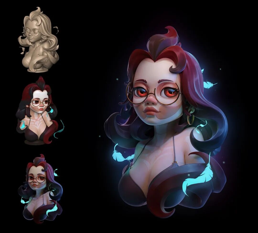 Aifan:下半年刚学完疯景大佬的3D课程,也把第一个3D辅助的立绘作品《雪豹卫》完成了。3D辅助可能是未来趋势,需要好好的捡起来。工作方面,现在在酷拳作为一名概念设计师,主要是配合RIOT团队参与制作LOR的世界观设定。