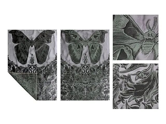 Rosanna Bishop对面料的设计与制作有一番独到的见解,她结合传统丝绸印刷过程与现代应用程序创建独特的设计,如激光切割设计皮革,然后印刷,在印刷油墨中使用“智能”绑定创建纹理,或者使用这些技术不非常传统织物等,如橡胶和聚氯乙烯。