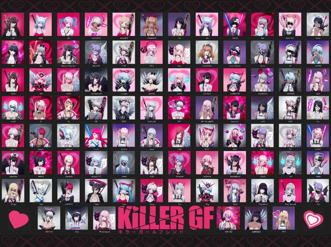 Killer GF从名字就可以看出,这是一个令全世界宅男都为之疯狂的NFT系列。它由前Riot Games公司设计师Zeronis所创作的7777个生成肖像艺术作品组成,全系列拥有超过240个设计特征。