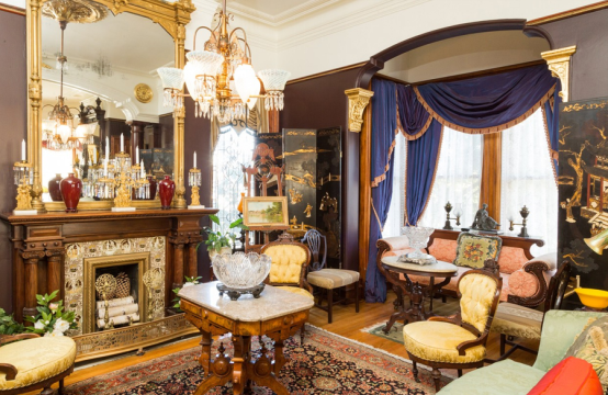 那时的墙体大多流行偏暗沉色调的维多利亚风格,它的色彩绚丽、用色大胆、大面积的黑白灰中性色,不断地与褐色、金色奏响豪华气派的乐章。