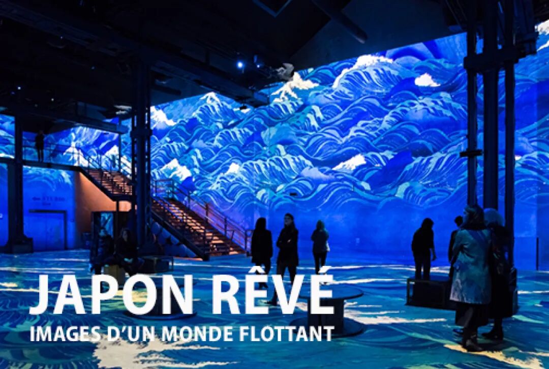 又或是穿越到东方,梦想日本漂浮的版画世界。展览以沉思的形式在日本的版画时代中漫步,这一时期已不复存在,却永远不会停止让我们着迷。迷人的艺妓们穿着带有优雅和色彩缤纷图案的和服,从宣纸屏风后面翩翩走出,夜空中漂浮的灯笼引入日本民间传说的呢喃,并被北斋的标志性巨浪淹没,神秘而瑰丽。