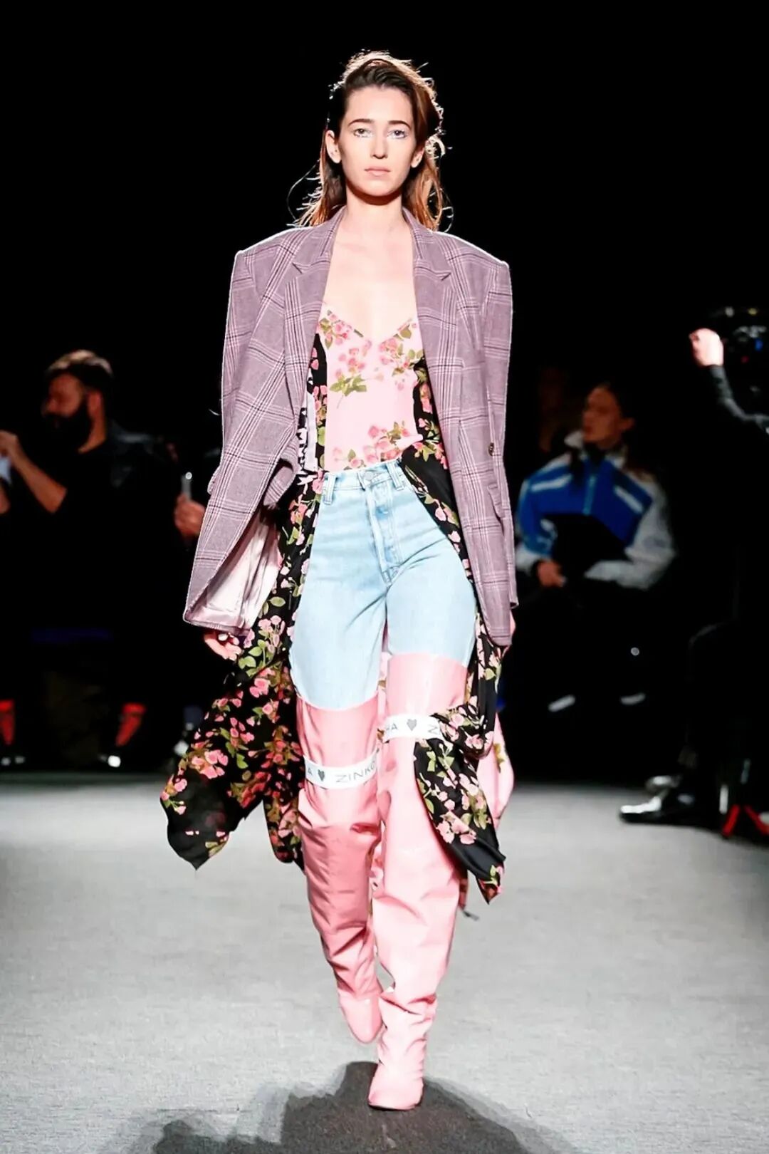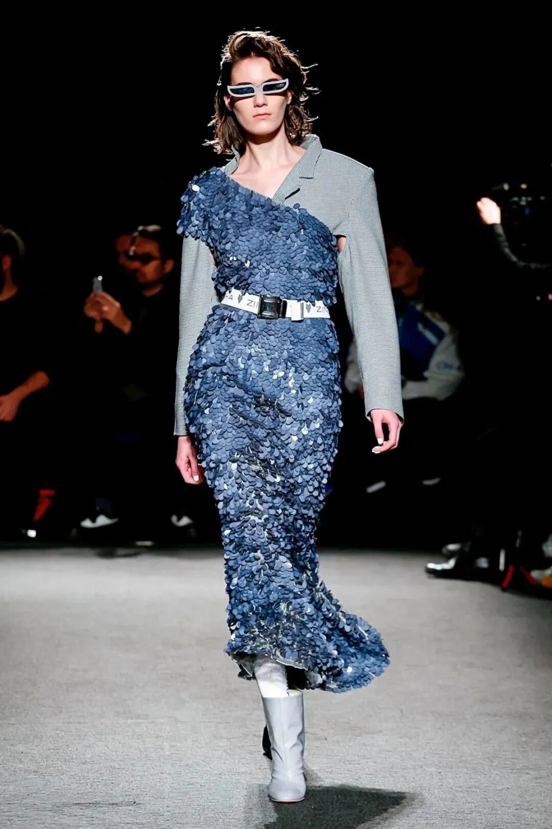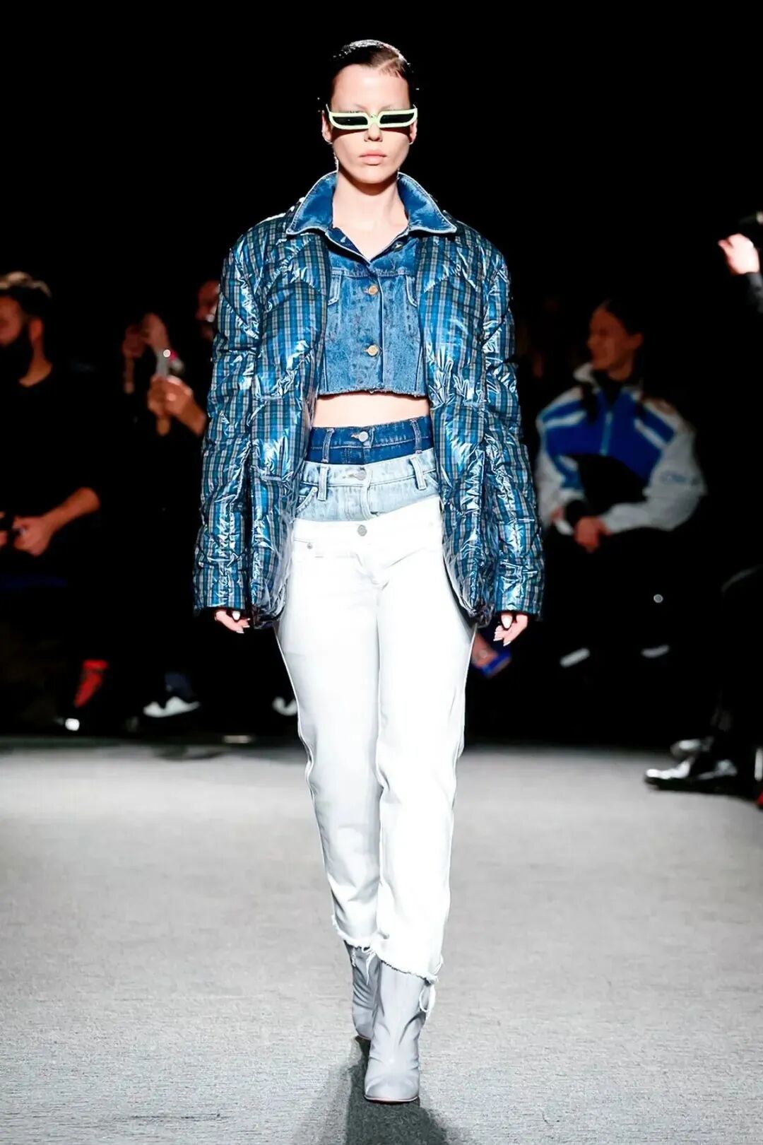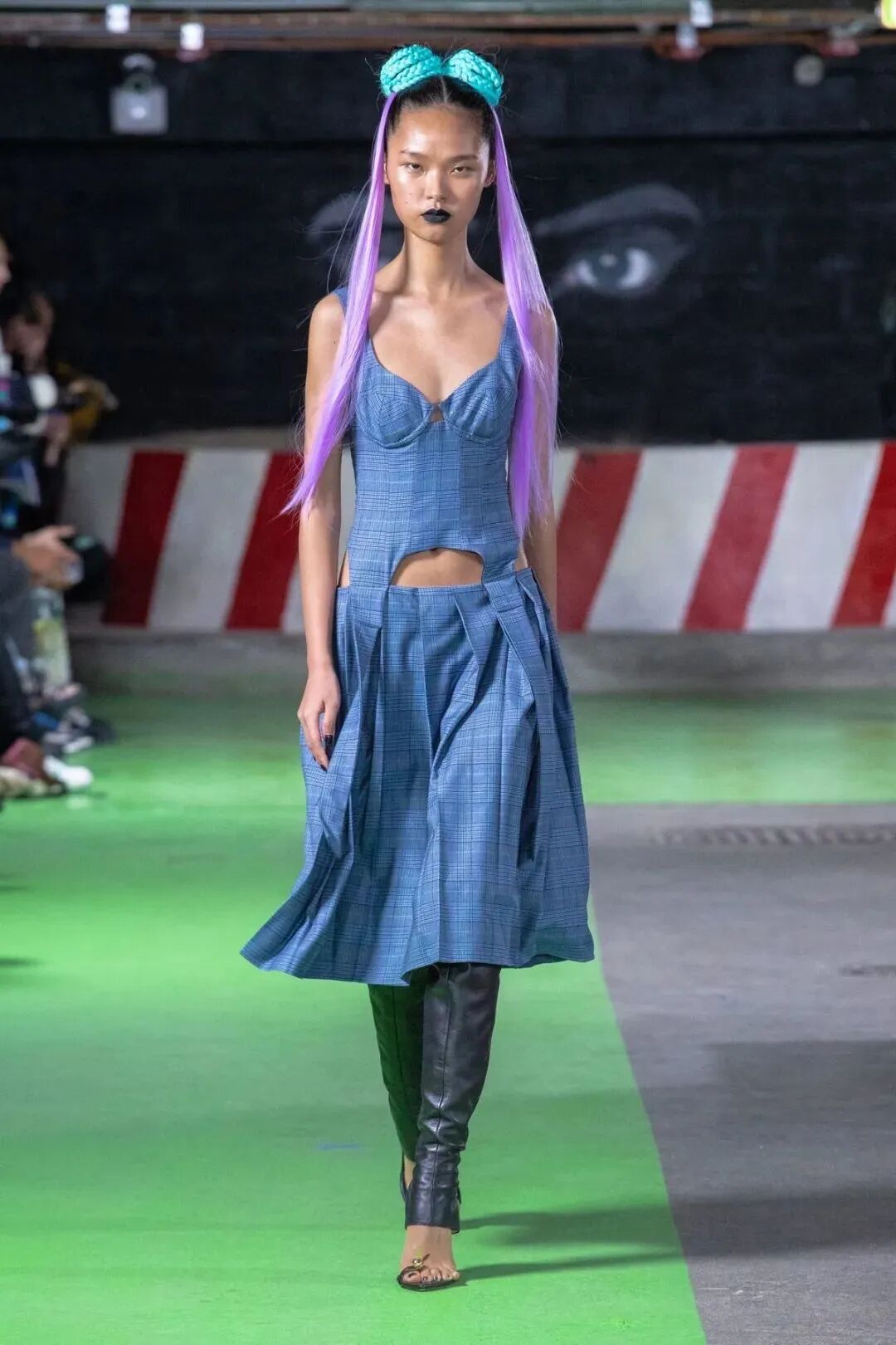 Natasha Zinko用野生印花与带有凸起和凹陷的面料进行重组,并且在紧身胸衣、格子呢、犬牙饰带、牛仔等单品中表达着终结者式的未来主义精神。