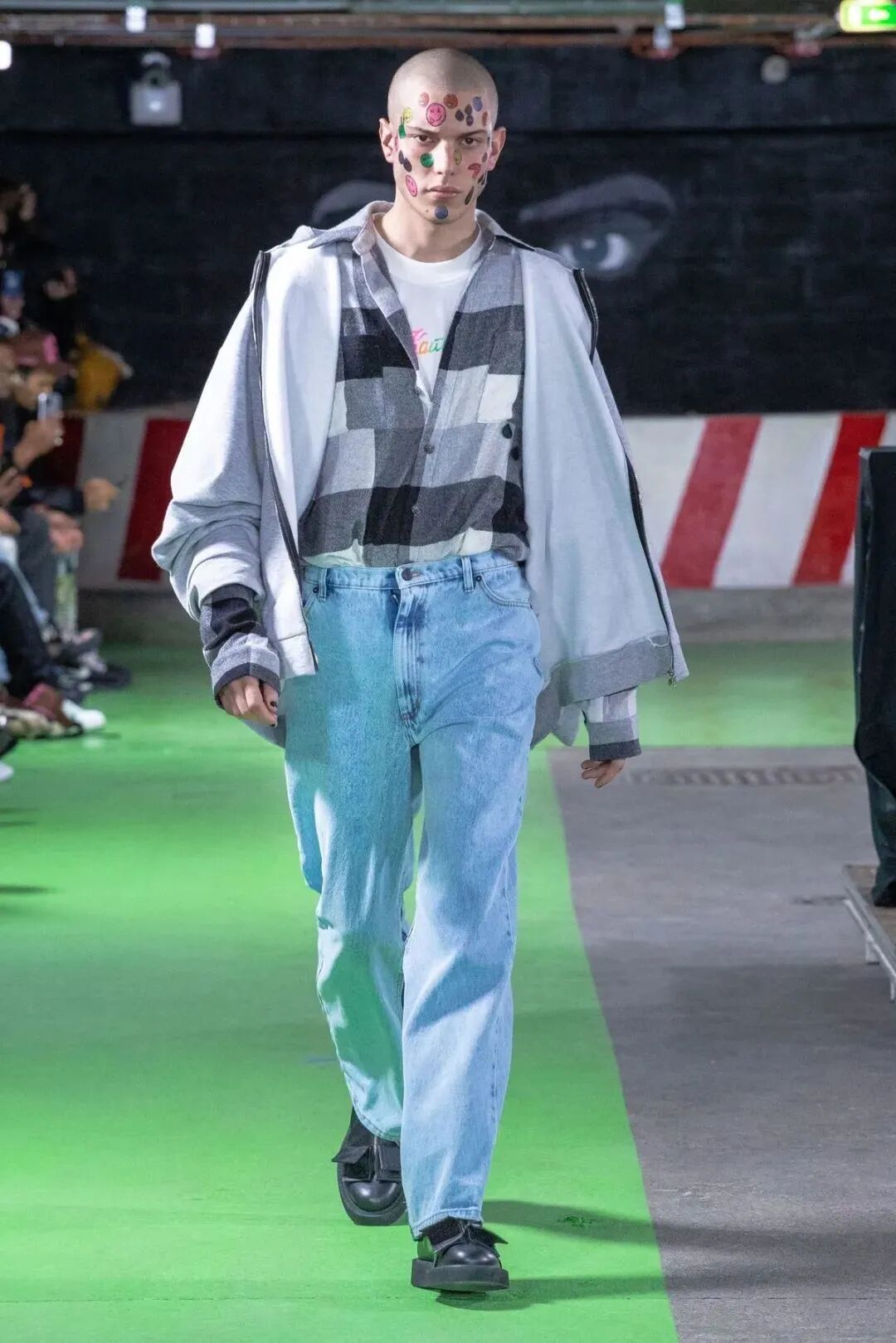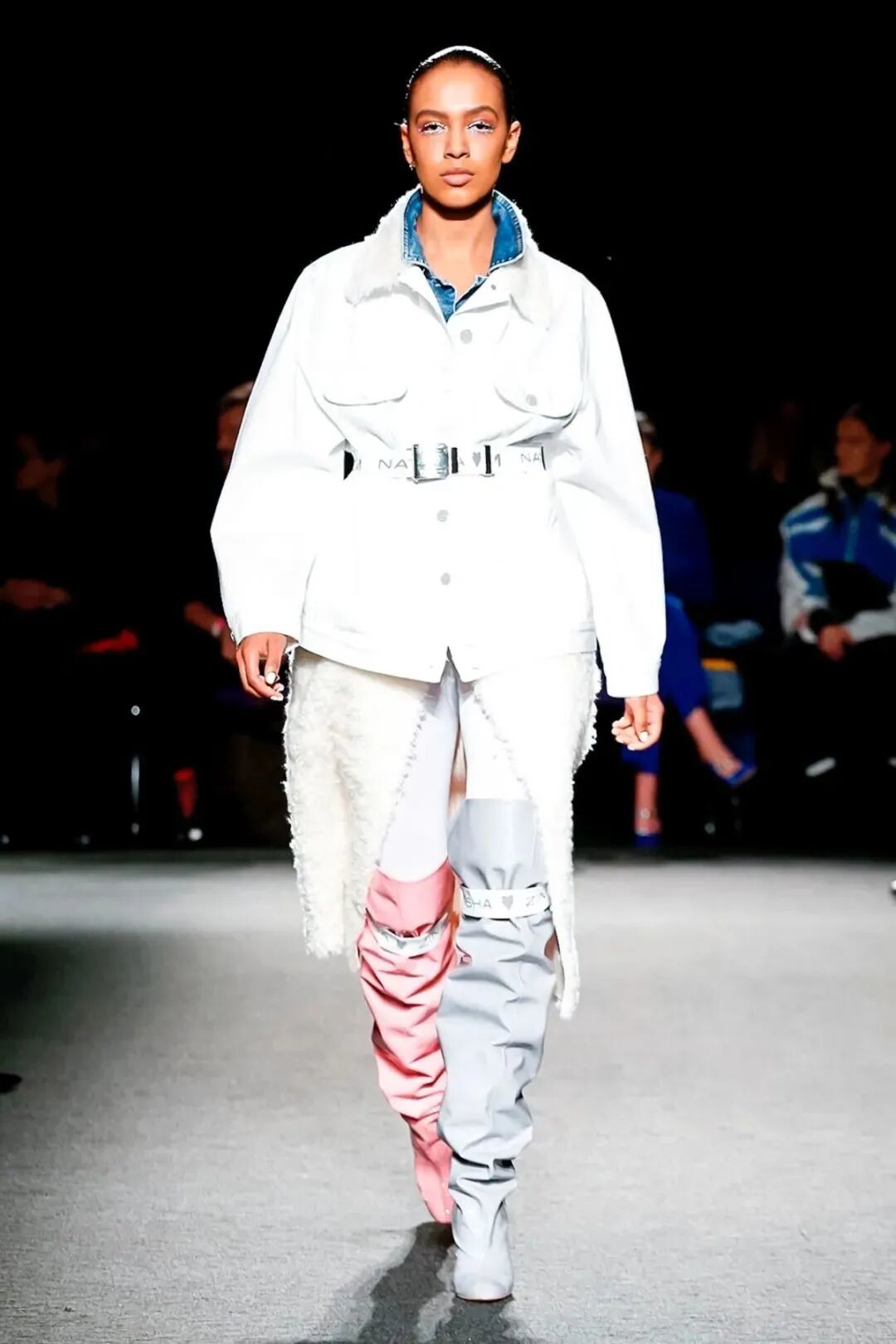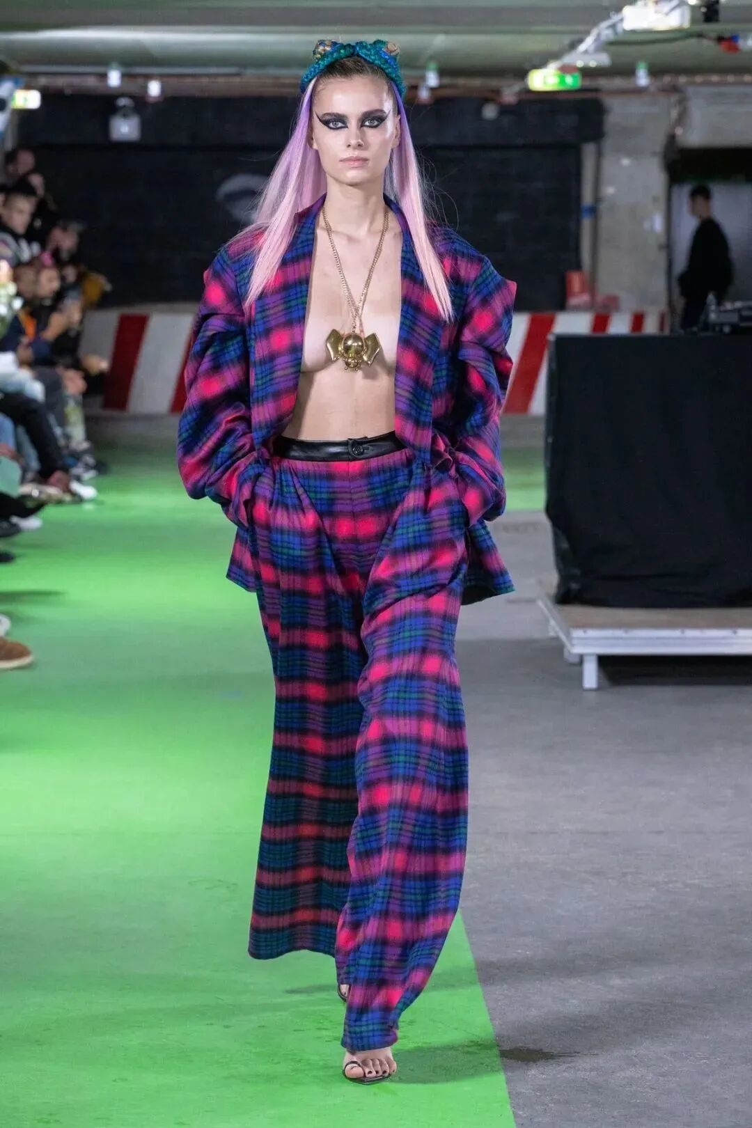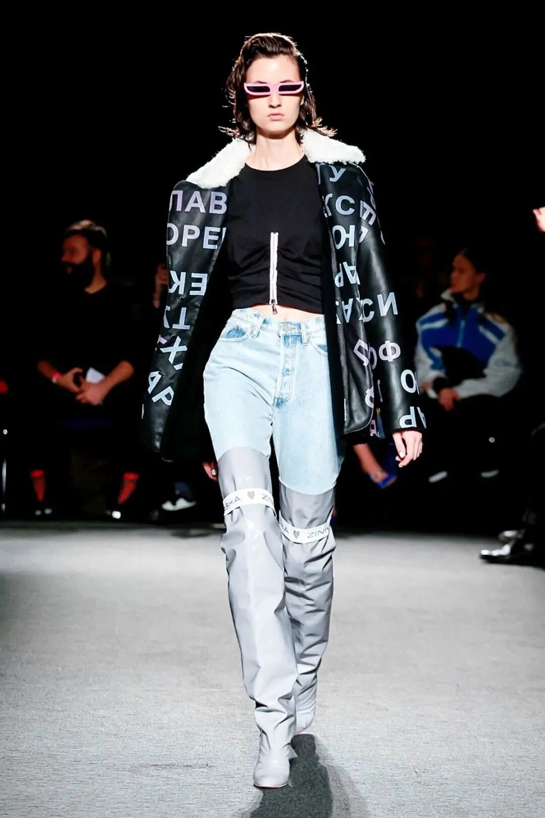 Natasha Zinko用野生印花与带有凸起和凹陷的面料进行重组,并且在紧身胸衣、格子呢、犬牙饰带、牛仔等单品中表达着终结者式的未来主义精神。