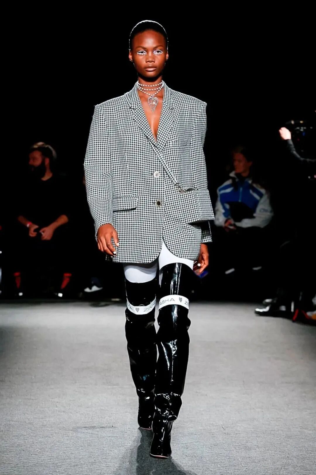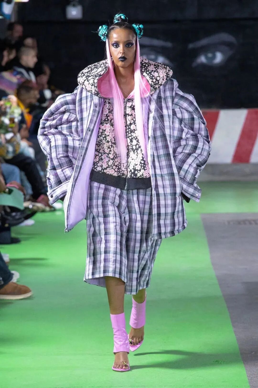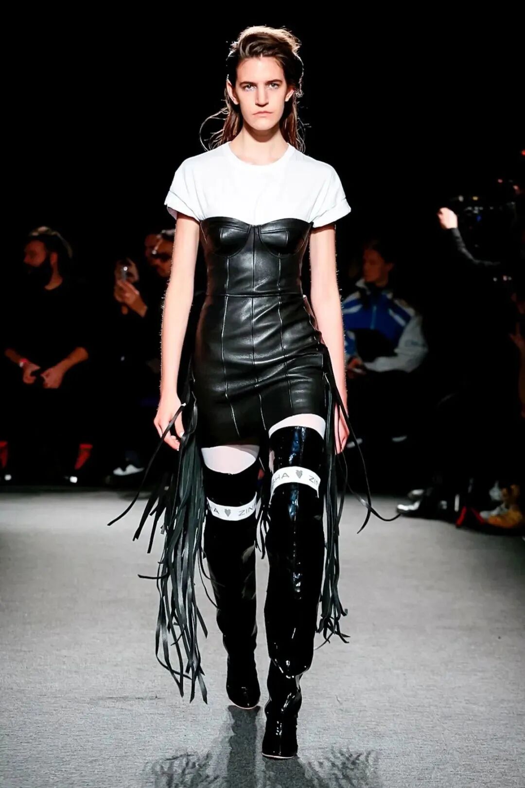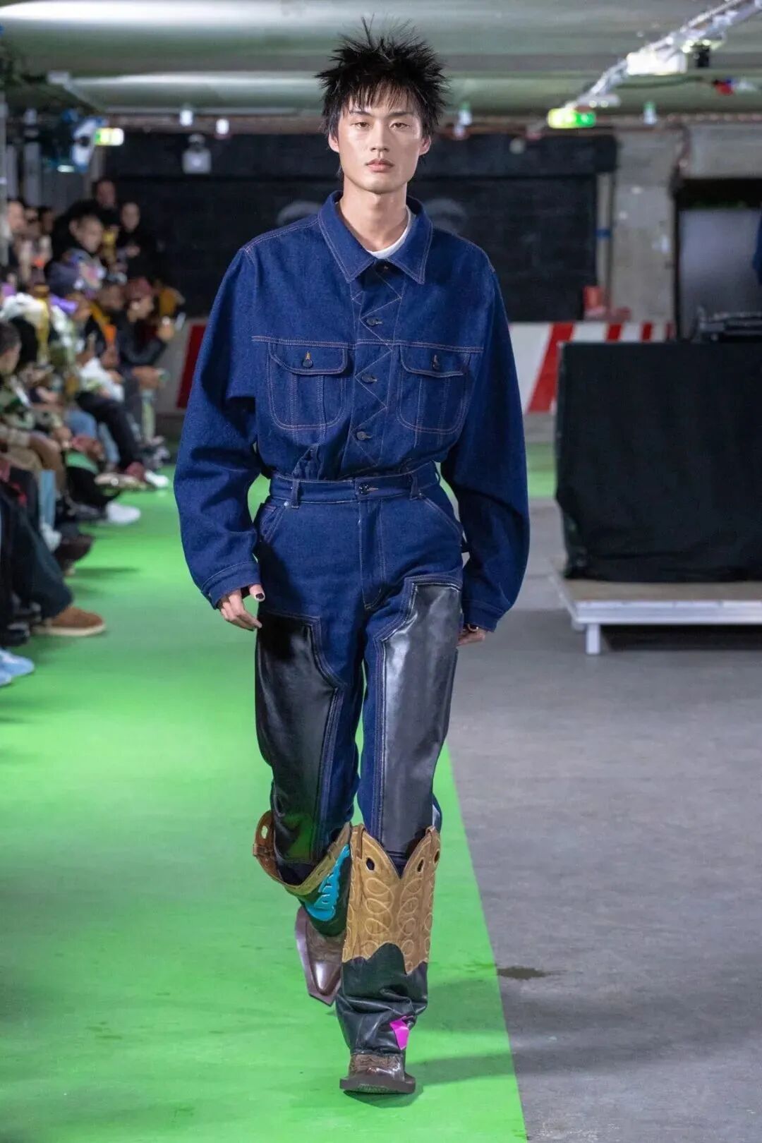 Natasha Zinko用野生印花与带有凸起和凹陷的面料进行重组,并且在紧身胸衣、格子呢、犬牙饰带、牛仔等单品中表达着终结者式的未来主义精神。