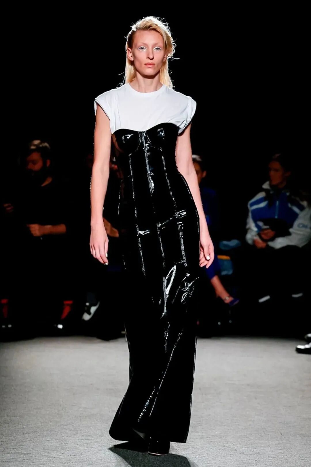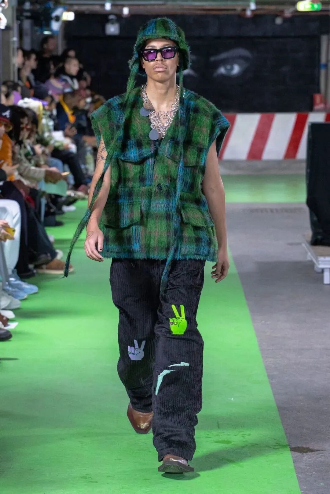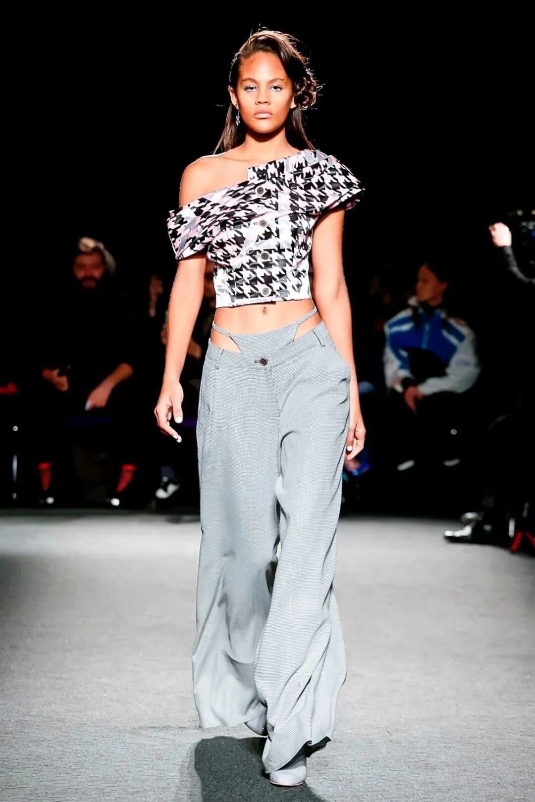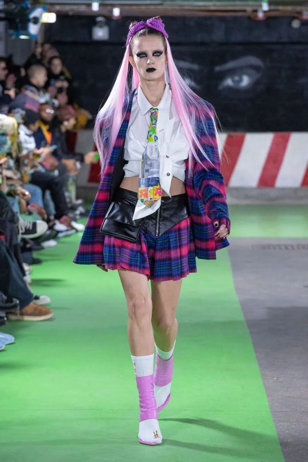 Natasha Zinko用野生印花与带有凸起和凹陷的面料进行重组,并且在紧身胸衣、格子呢、犬牙饰带、牛仔等单品中表达着终结者式的未来主义精神。
