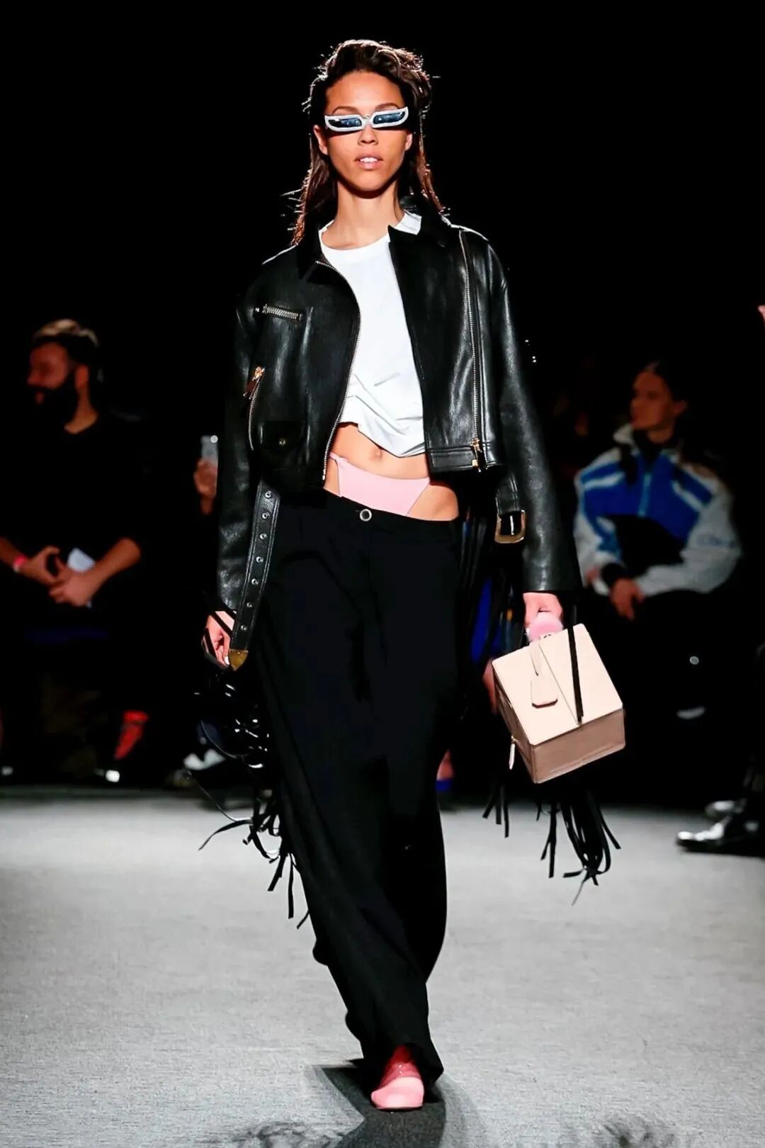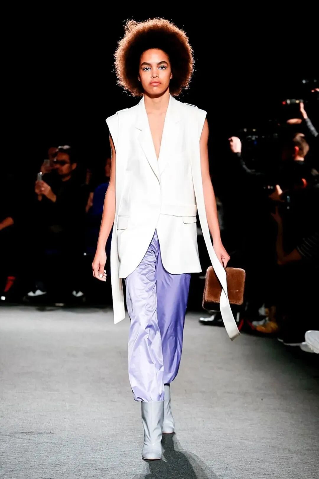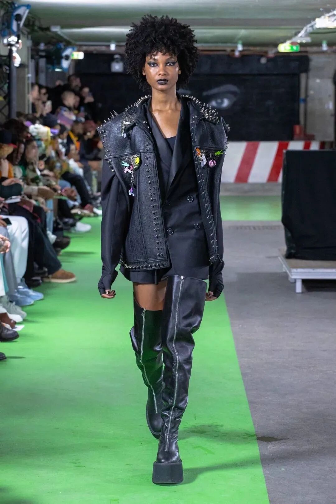 Natasha Zinko在设计中凸显的刚柔并济,让娘与man在服装中达到一定的平衡。女性代表的波点薄纱设计与男性代表的棱角分明的皮革,完美的融合在一套Look中,就像她的背景一样富有融合的色彩。