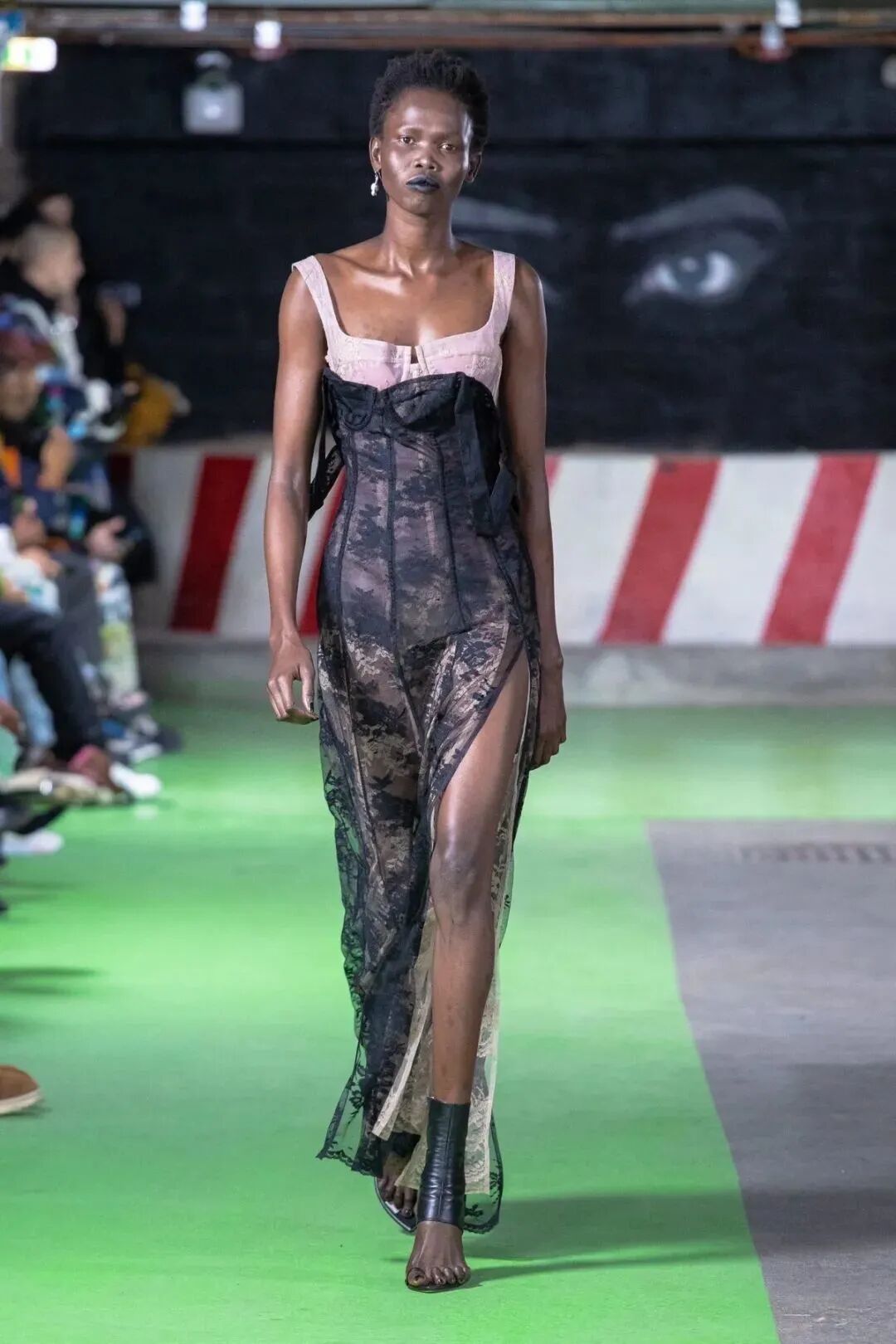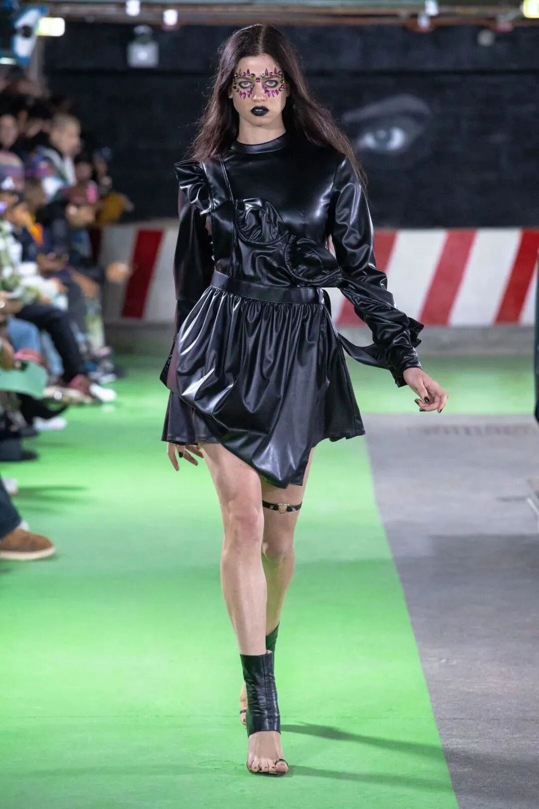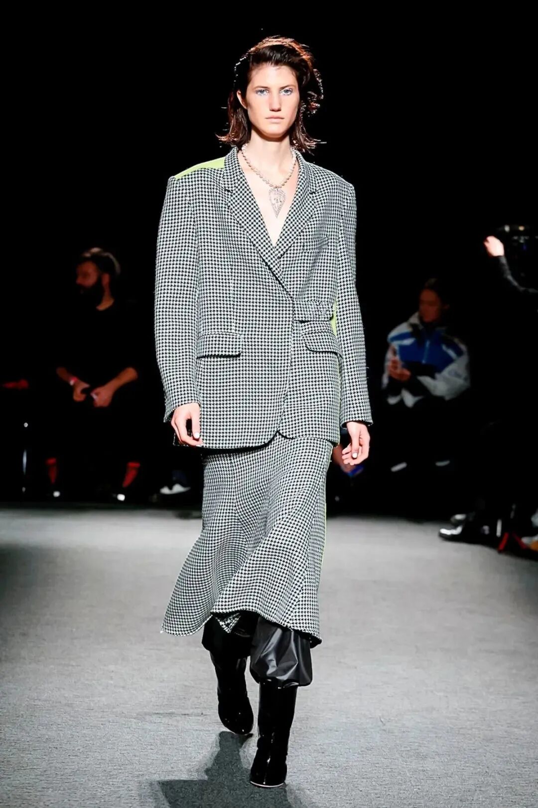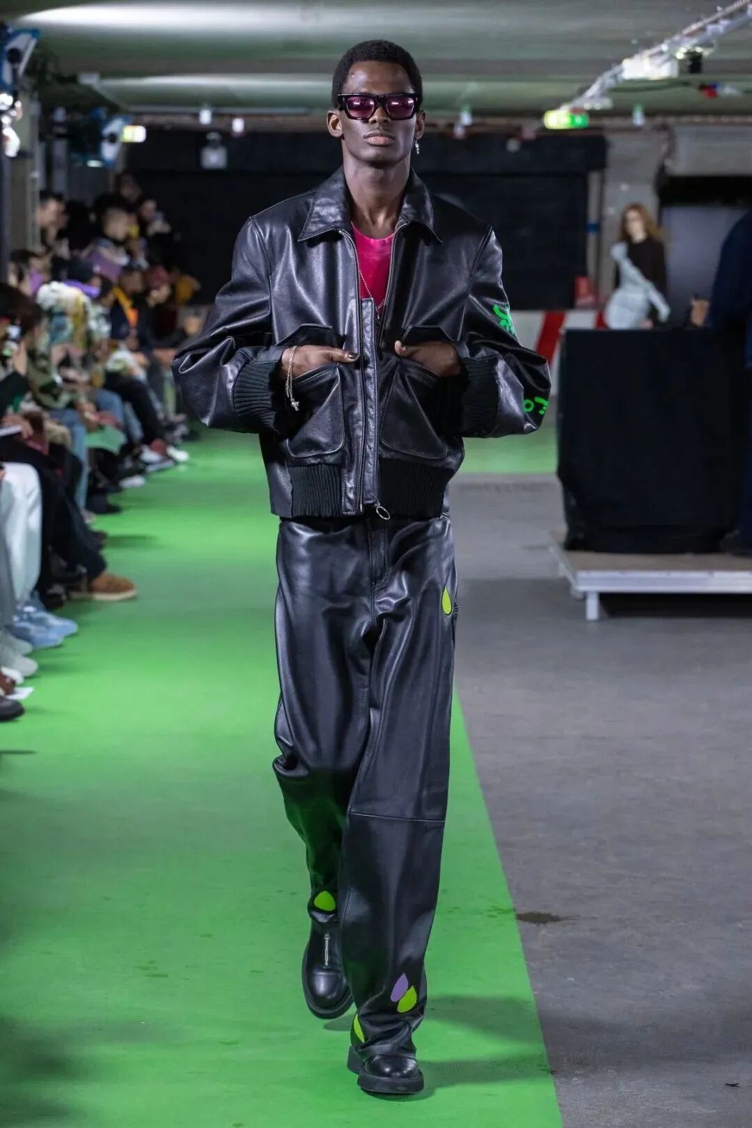 Natasha Zinko在设计中凸显的刚柔并济,让娘与man在服装中达到一定的平衡。女性代表的波点薄纱设计与男性代表的棱角分明的皮革,完美的融合在一套Look中,就像她的背景一样富有融合的色彩。