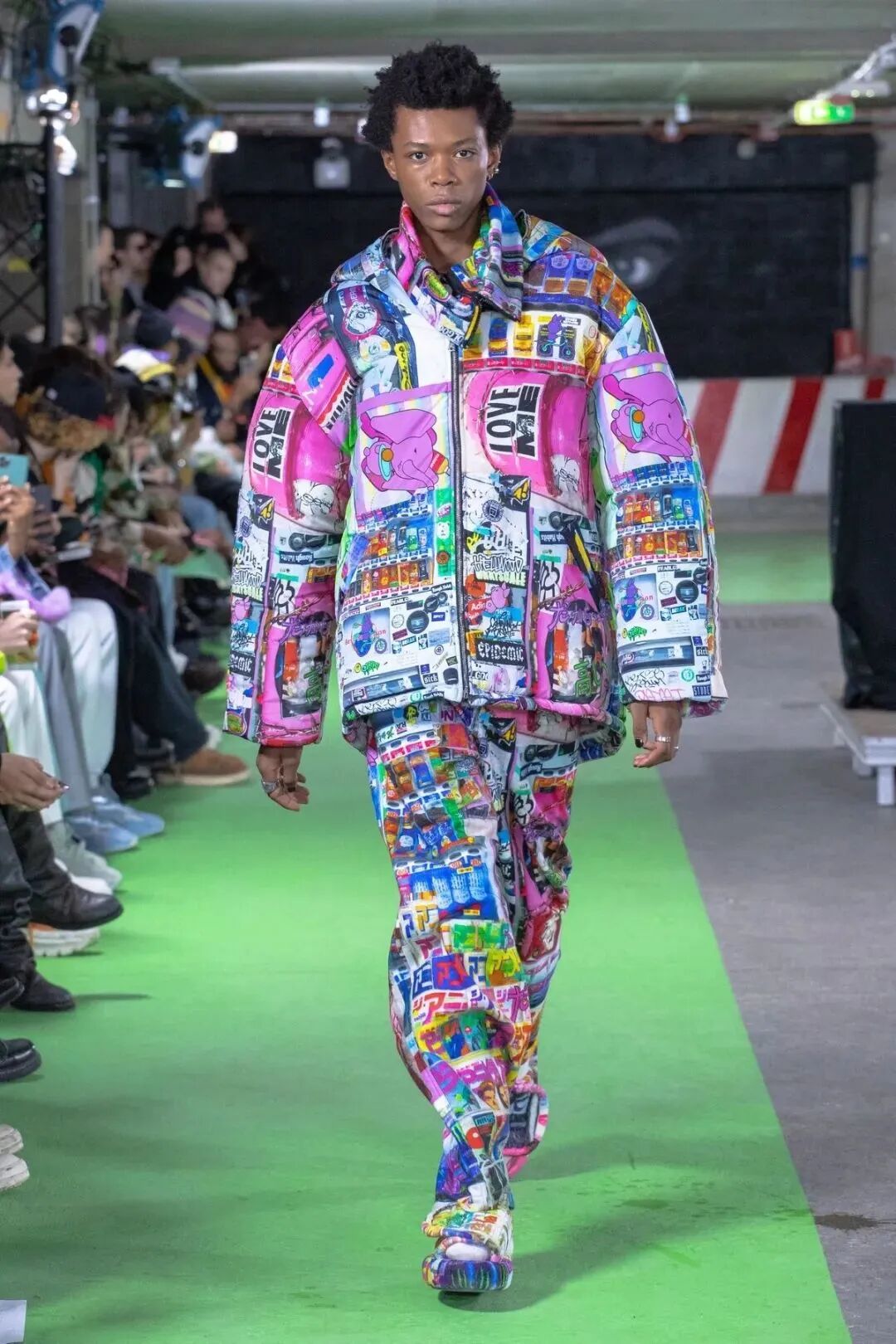 设计师受到自己12岁儿子去东京旅行的启发,在旅行之中提炼元素,繁复的装饰、多色彩的假发、可可爱爱的男孩女孩们…将用相机记录下的照片,用拼贴的方式重组。