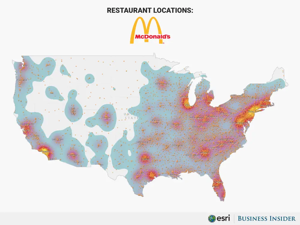各种零售组织都在针对复杂的消费市场进行规划并跟上竞争的步伐,比如采用GIS等手段研究零售店的选址和分布,将消费者需求、地理人口、交通流量、竞争对手位置等市场特征进行联动,寻找最佳的网点。例如,星巴克使用名为 Atlas 的内部地图和商业智能平台来确定在哪里开设新地点。