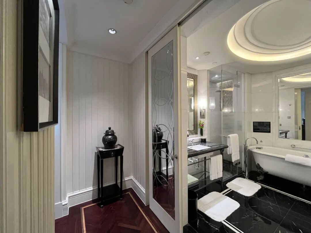 全系客房在还原上世纪20年代美学场景同时,让当下旅居所需的轩敞大理石浴室、步入式衣帽间、现代数码设备等配置不露声色地融入。