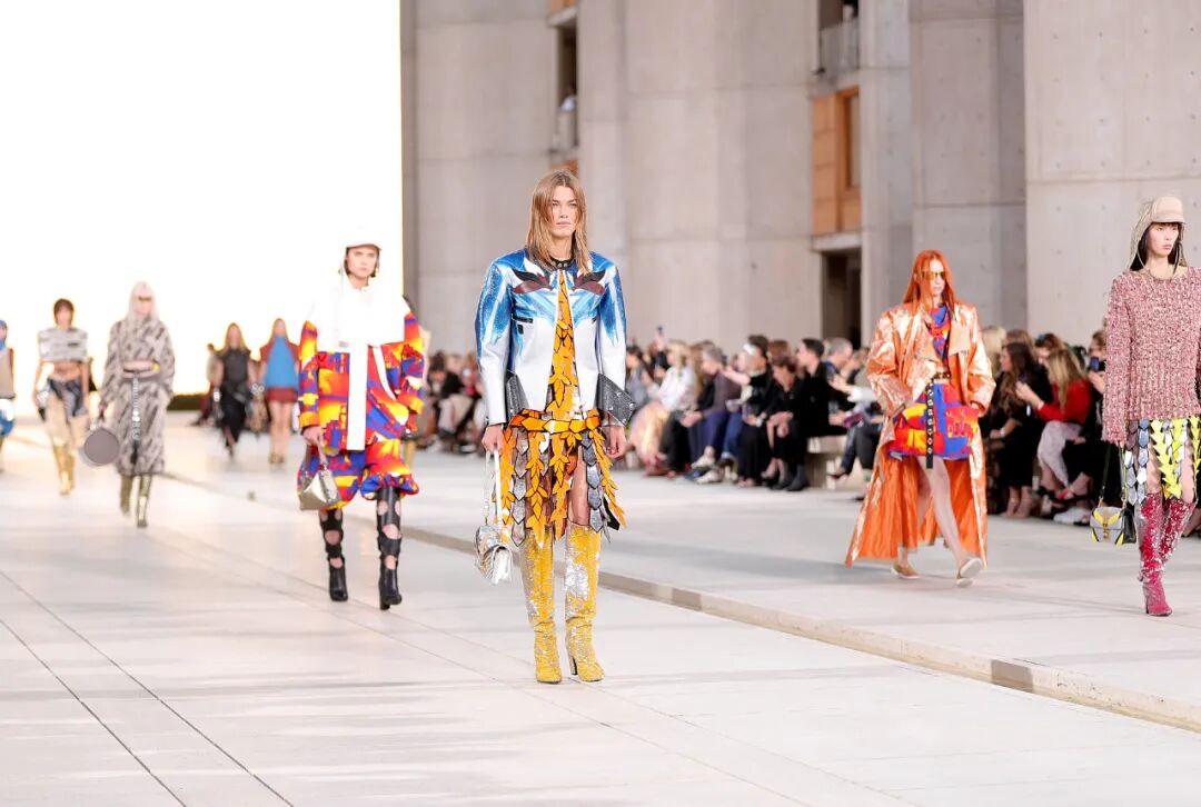 Nicolas Ghesquière手下的Louis Vuitton女装系列秀场如约而至,2023早春系列在建筑大师 Louis Kahn 设计修筑的加州索尔克研究所发布。