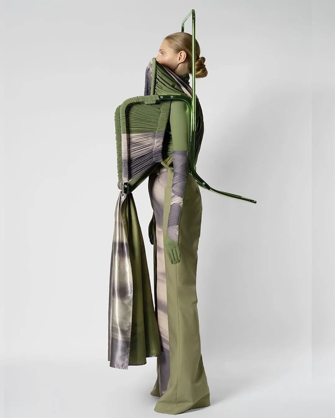 2022年,他从圣马丁学院硕士毕业,其毕业作品获得今年的 L’Oreal Professionel 大奖 。其透过高饱和色彩的数码印花,将废弃的椅子和时装融为一体,诠释了名为“在斗争中寻找美和力量“的系列。