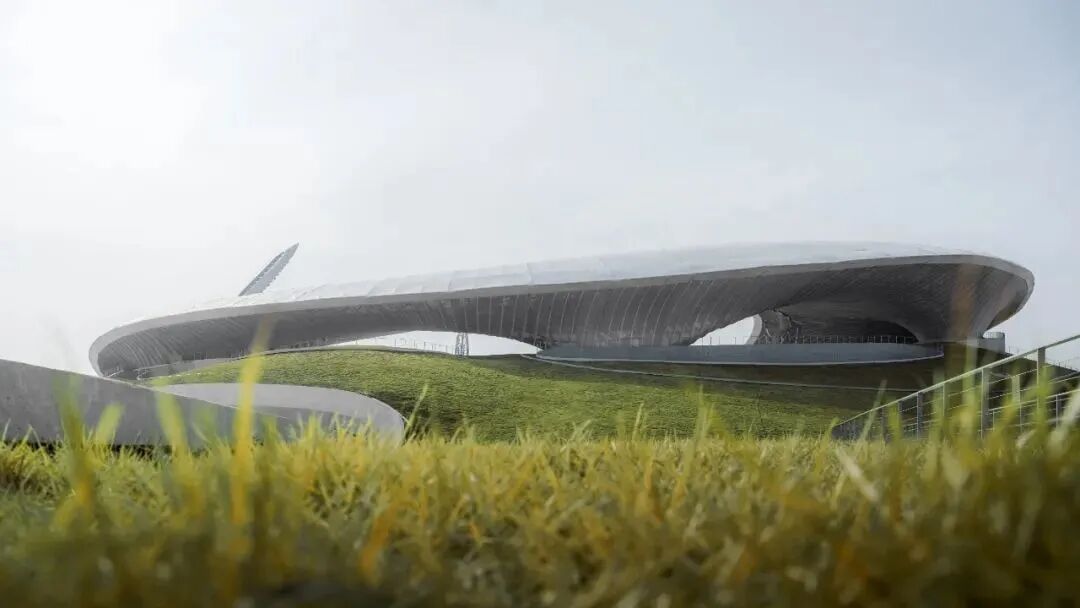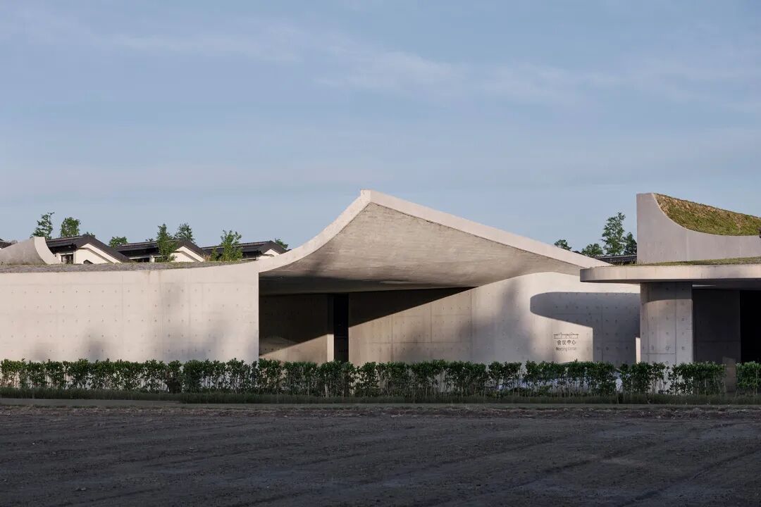混凝土材质自带的朴素感使会议中心低调地融入了环境,翻折的上人屋面又消解了大而平的建筑自身的体量感,增加了空间活跃性,一定程度上遵循了区域内建筑的整体风格,实现了简单逻辑下的多样性空间建造。