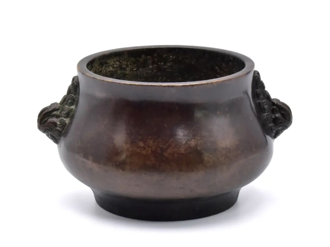 此类铜炉极为少见,同类器形可对比康熙时期少量的宫廷御制文房瓷器香炉,多见天蓝釉色或白釉。相同器形的白釉炉藏于上海博物馆,另一件则见于望星楼藏瓷。