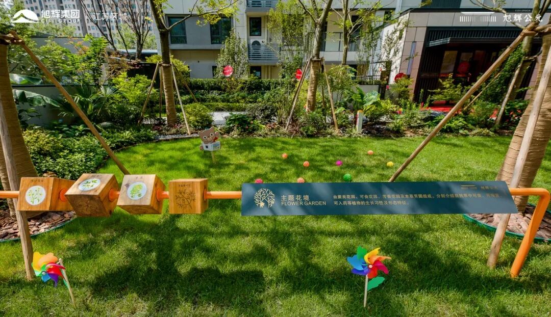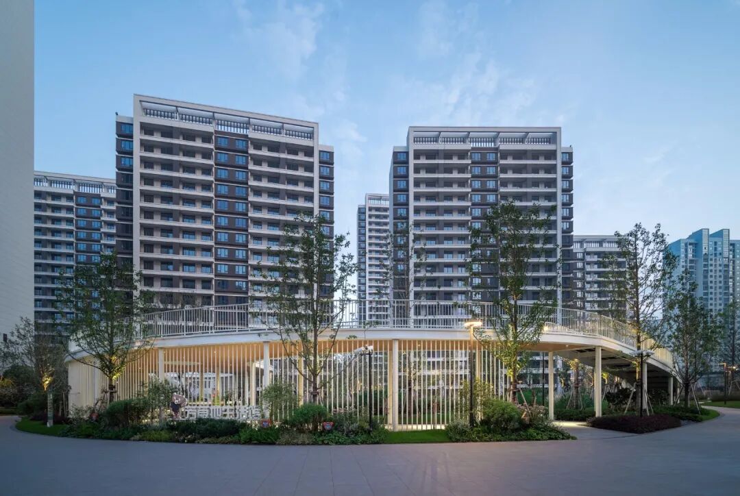 苏州旭辉公元·萃庭以共享客厅、儿童乐园、运动场地为三大核心景观为空间布局,在其他宅间设置与植物相结合的小型功能场地,如林下广场、一米菜园、植物科普花园,利用环形慢跑道将各个功能空间有机串联,从而呈现社区的多功能性场地。