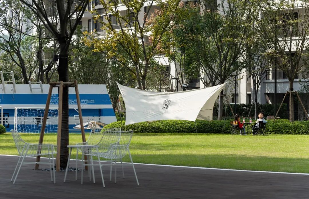 苏州都会上品在近1100平米的鲜氧草坪上, 搭建了「芳草地生活馆」,为生活方式打开了更多可能性。在这个多空间多功能全龄复合的会客空间,可以满足居民休憩交友、邻里交流、节日活动等社交休闲需求,实现归家的放松与舒适。