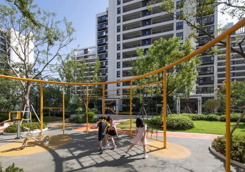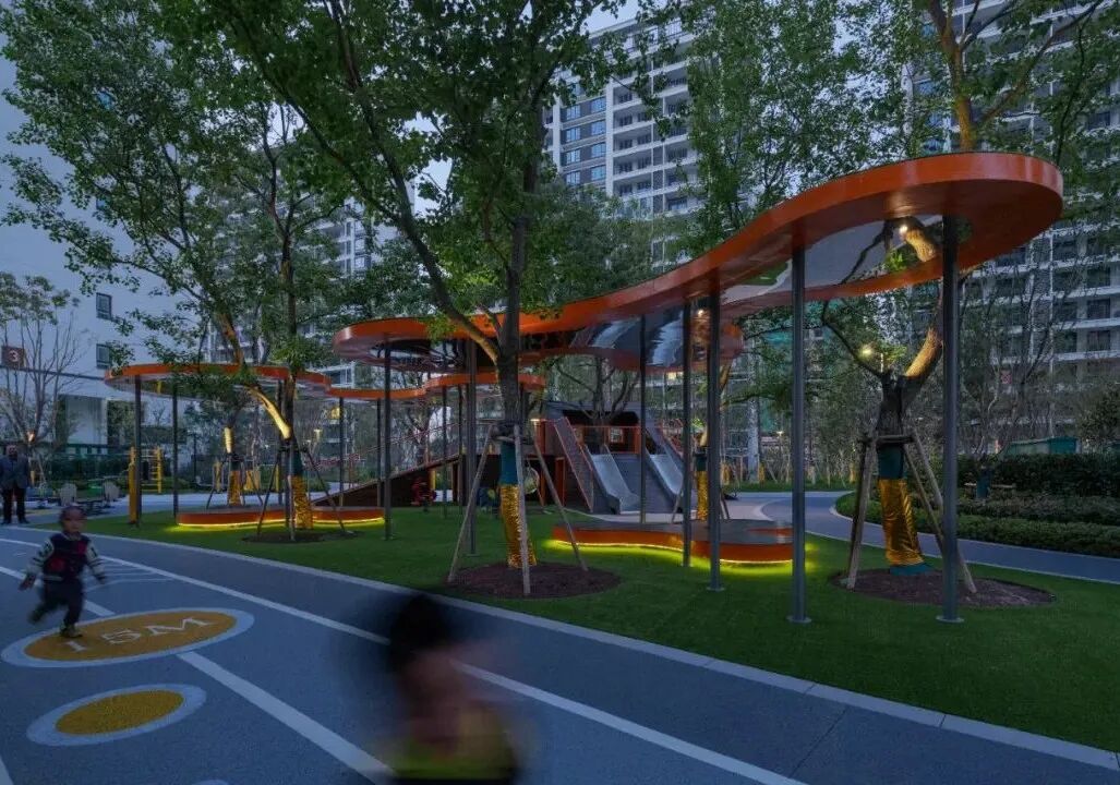 江阴澄江府二期着力打造成社区公园,通过全龄环与丰富的地形,结合丛林探险骑行道,为业主提供一个自然、放松、游乐的社区空间。
