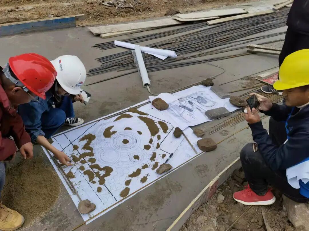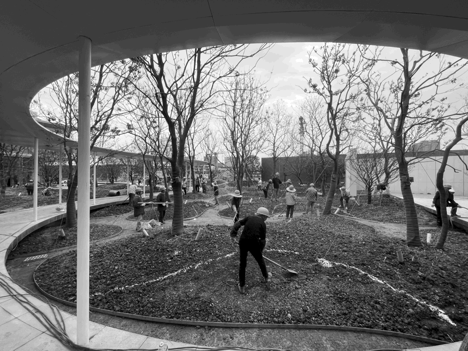 现场地形沙模,植物点位沟通,与区域、设计院、施工单位现场共创,为更好的落地 ↑