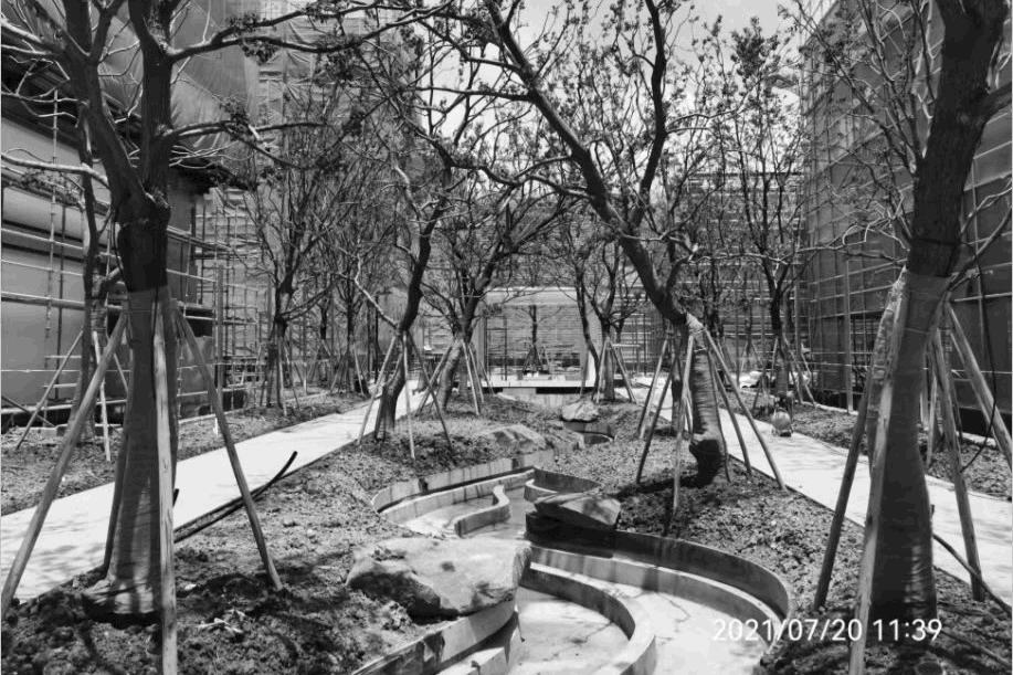 施工组织简单:小项目强交叉,景观其实是非常难做的,几乎没有好的办法。过程中建筑和幕墙对景观施工的影响一点也不意外,只有最简单一招:见缝插针,死磕推进。“两图一表”在项目推进中起到了很好的促进作用。